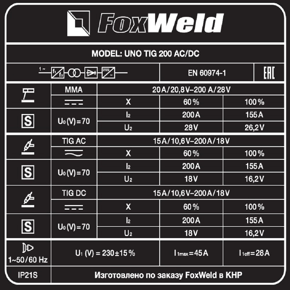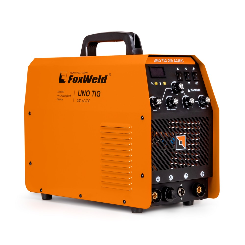Аппарат аргонодуговой сварки UNO TIG 200 AC/DC — инверторная аргонодуговая установка для работы как на постоянном (сварка черных и нержавеющих сталей, меди, титана и пр.), так и на переменном токе (сплавы алюминия, магния, медные сплавы больших толщин, где требуется удаление окисла со свариваемой поверхности). Основным принципом AC/DC установки является использование двойного инвертора и создание полуволны прямоугольной формы, которая делает сварочную дугу более стабильной, увеличивает тепловложение и очищающий эффект. Главная особенность - удобная и простая система управления и индикации. На передней панели расположена циклограмма и в каждой точке нового этапа сварочного процесса аргонодуговой сварки есть ручка плавной регулировки. Основная сфера применения источника аргонодуговой сварки — это профессионалы с консервативным подходом (нет автоматики, нет сложных цифровых меню настройки, всё наглядно понятно) или начинающие специалисты, которые при ручной установке настроек, на личном опыте, будут чувствовать зависимость процесса сварки от каждого выставленного параметра. Корпус выполнен из стали большой толщины, сверху массивная и удобная ручка значительно облегчает перемещение сварочного аппарата UNO TIG 200 AC/DC. Выступающие края стенок корпуса на переднюю панель защищают её от механических повреждений.СВАРКА ПЕРЕМЕННЫМ И ПОСТОЯННЫМ ТОКОМ: Возможность работать как на постоянном (сварка стали, меди, титана), так и на переменном токе (сплавы алюминия, магния, медные сплавы больших толщин, где требуется удаление окислов со свариваемой поверхности).NO SYNERGY: Удобная и простая система управления и индикации. На передней панели расположена циклограмма и в каждой точке нового этапа сварочного процесса аргонодуговой сварки есть ручка плавной регулировки. Сварщик наглядно видит каждый шаг сварочного процесса и быстро может выставить необходимые ему значения, не тратя время на сложные меню или комбинации включения разных кнопок. На экране отражаются параметры настроек. Основная сфера применения источника аргонодуговой сварки — это профессионалы с консервативным подходом (нет автоматики, нет сложных цифровых меню настройки, всё наглядно и понятно) или начинающие специалисты, которые при ручной установке настроек, на личном опыте, будут чувствовать зависимость процесса сварки от каждого выставленного параметра.РАБОТА ПРИ ПОНИЖЕННОМ НАПРЯЖЕНИИ: Аппарат работает от однофазной сети 220 В при перепадах напряжения от 140 до 240 В. Это даёт возможность производить сварочные работы в «плохих» сетях – на даче, в домашних условиях при пониженном или нестабильном напряжении.РАСШИРЕННАЯ КОМПЛЕКТАЦИЯ: Сварочная горелка, хомуты для газового шланга, щиток сварщика, щётка и другие сопутствующие и расходные материалы позволяют быстро приступить к работе.НЕБОЛЬШОЙ ВЕС: Небольшой вес и размеры сварочного аппарата плюс ручка на корпусе добавляют мобильности, компактности и идеально подходят для бытового и полупрофессионального использования.ПРЕИМУЩЕСТВА:TIG AC – аргонодуговая сварка переменным током тугоплавким вольфрамовым электродомTIG DC- аргонодуговая сварка постоянным током вольфрамомMMA– ручная дуговая сварка покрытым электродомHF (в конструктиве аппарата есть осциллятор) – высокочастотный бесконтактный способ поджига сварочной дуги