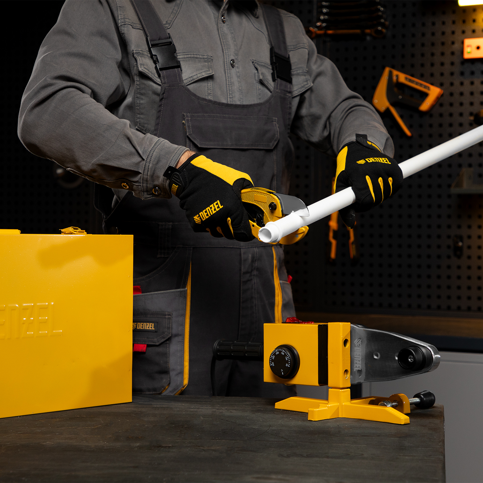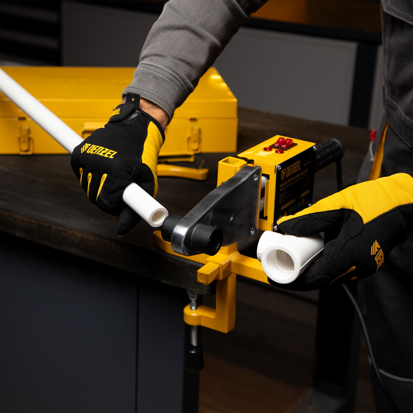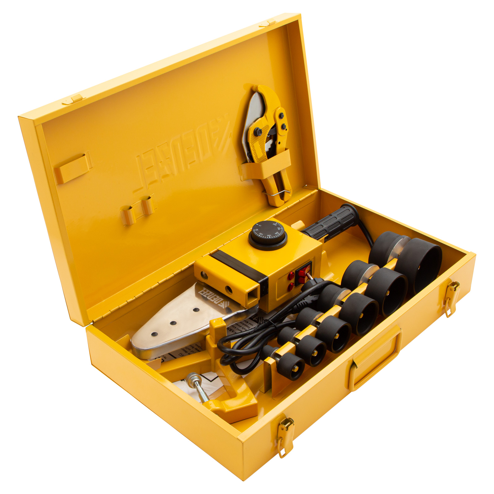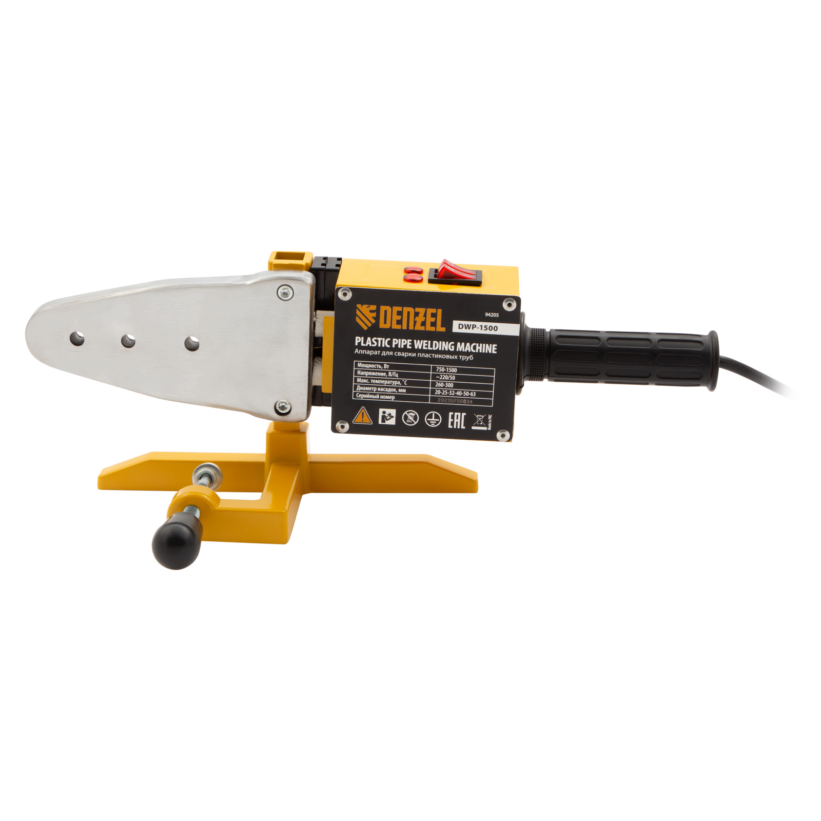 Аппарат для сварки пластиковых труб DWP-1500, 1500 Вт, 260-300 град, комплект насадок, 20-63 мм Denzel в Воронеже