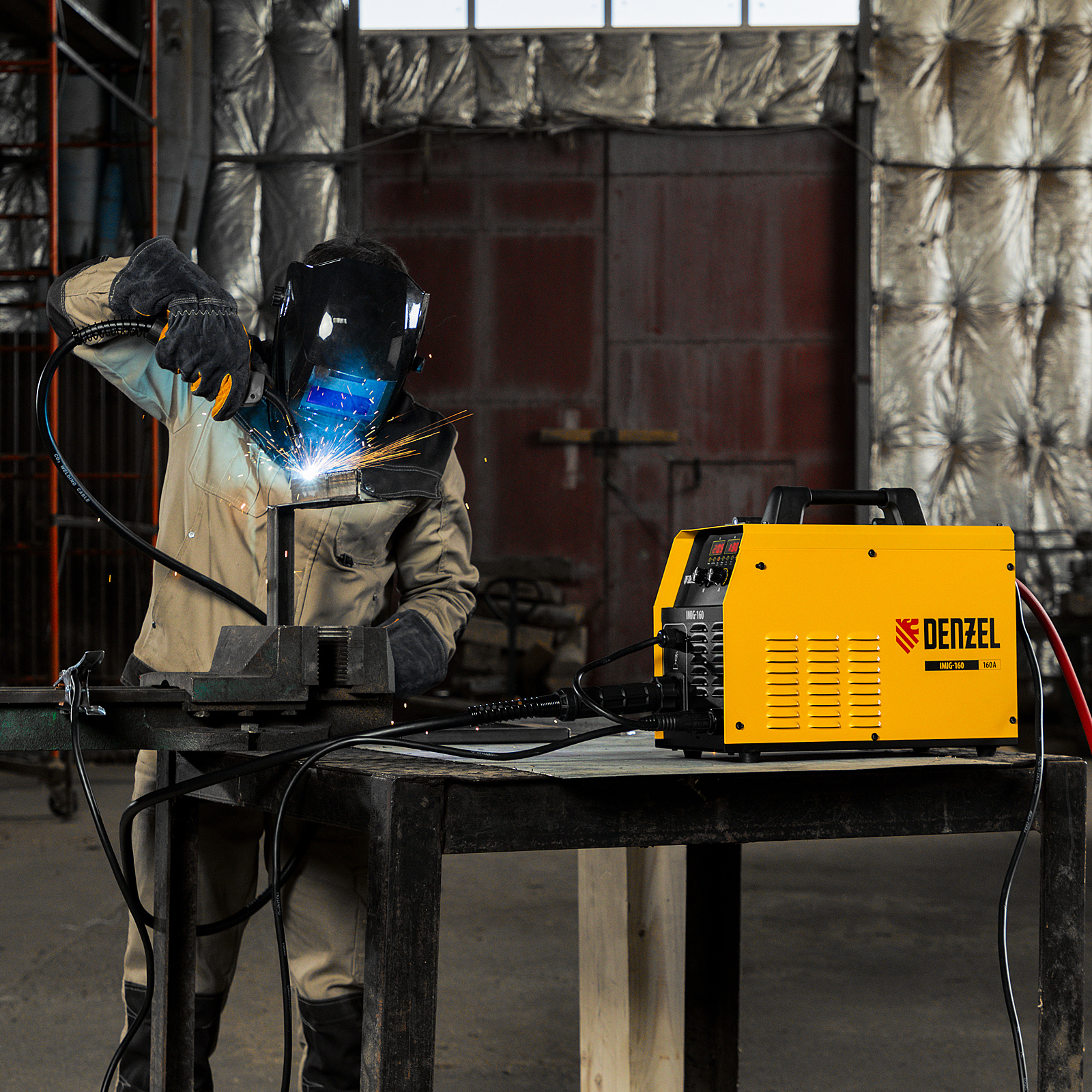 Аппарат инвертор. полуавтомат. cварки IMIG-160 Synergy, 160 А, ПВ 60%, катушка 5 кг Denzel в Воронеже