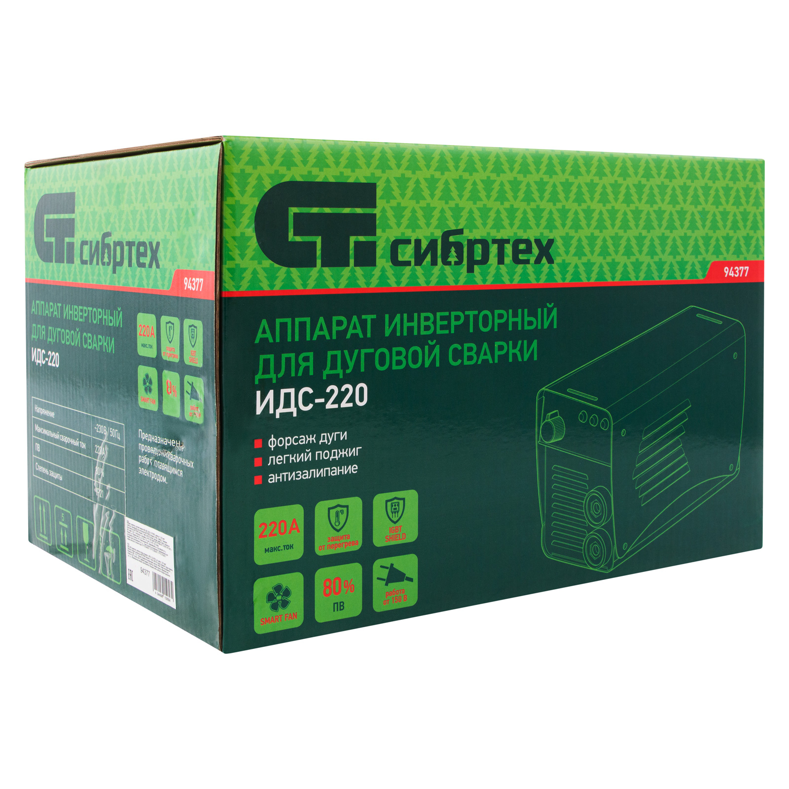 Аппарат инверторный дуговой сварки ИДС-220, 220 А, ПВ 80%, диаметр электрода 1.6-5 мм Сибртех в Воронеже
