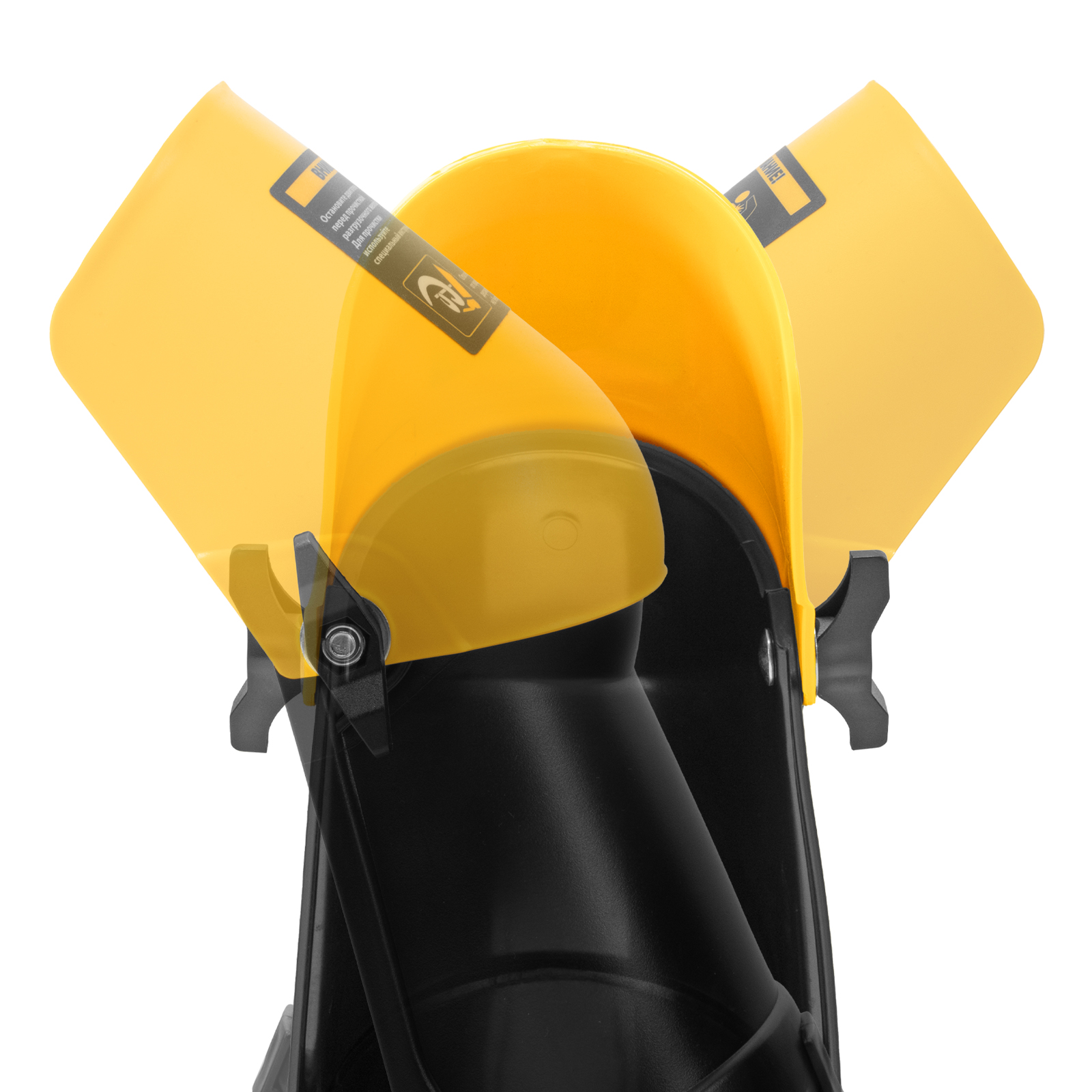 - Высокая надежность и плавность хода — удаленное управление желобом осуществляется с помощью тросового механизма, наклон дефлектора регулируется вручную.