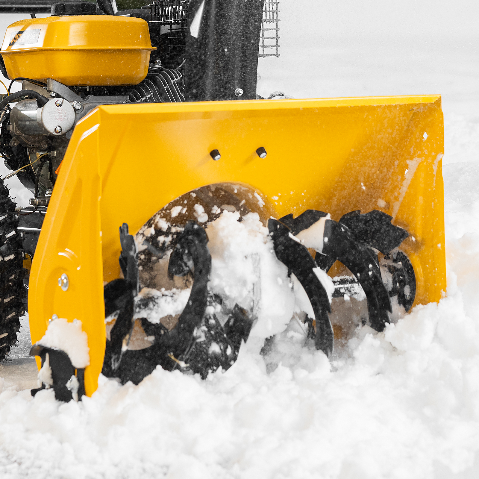 - Экономия сил и времени — снегоуборочная машина оснащена приводом на колеса, а значит, ее не придется толкать во время работы.