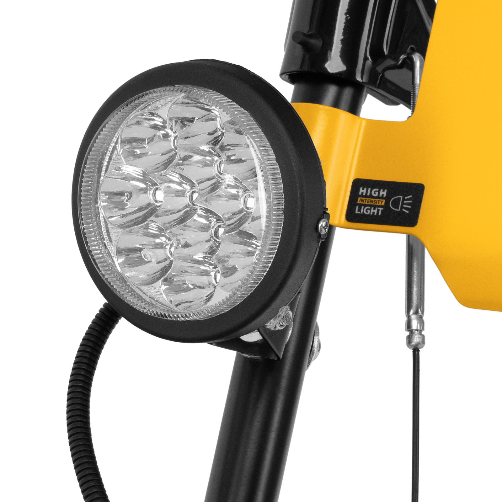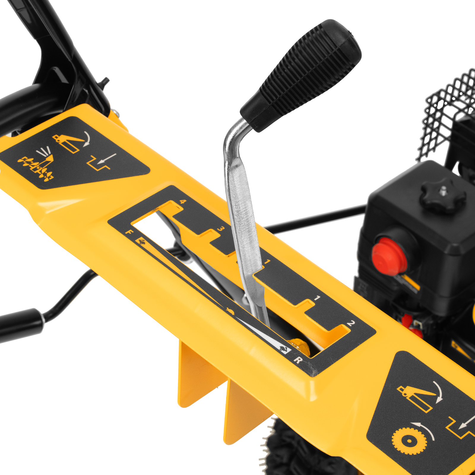 - Комфортная работа — рычаг поворота желоба позволяет легко выбрать желаемое направление выброса снега, а яркая LED-фара позволяет работать в условиях плохой видимости.