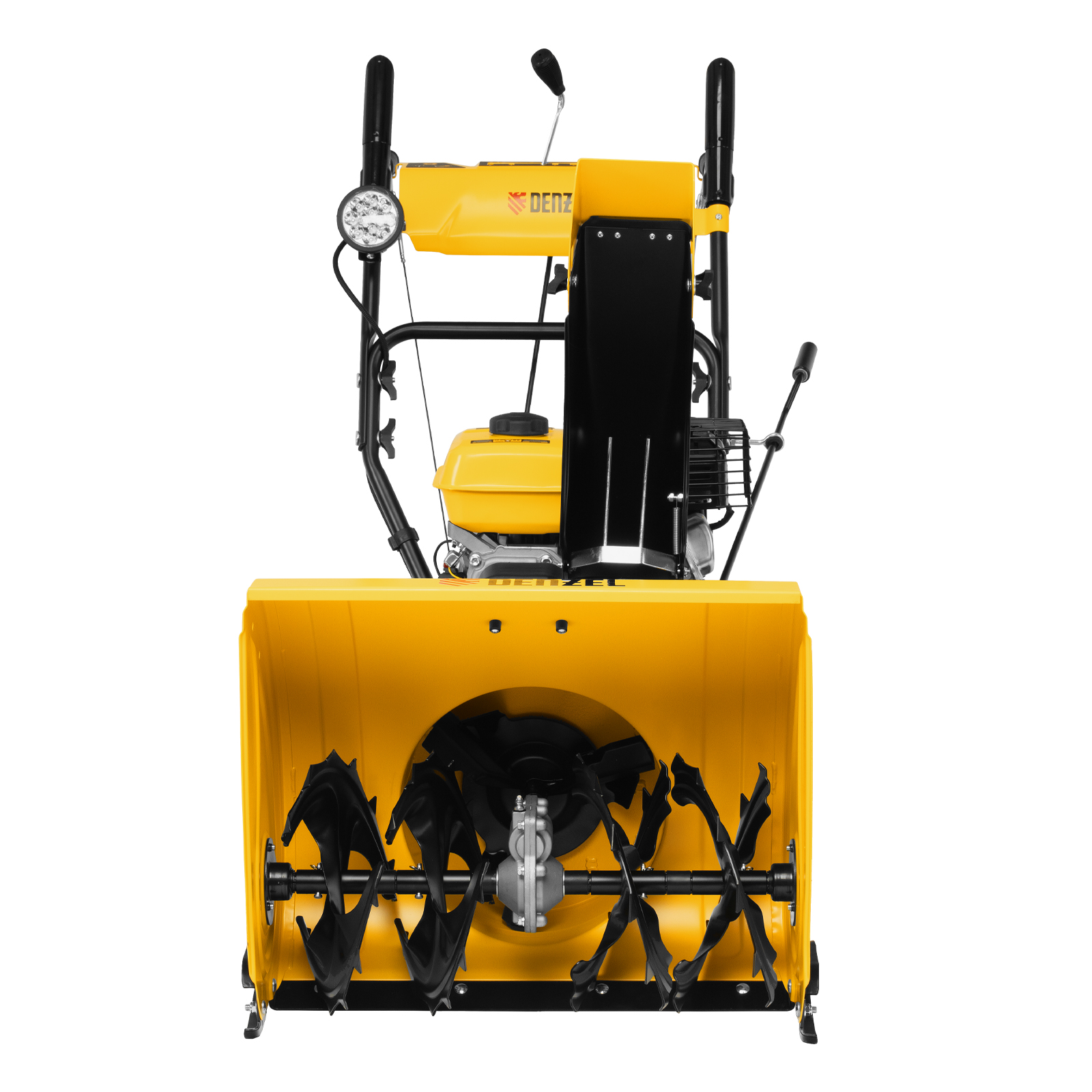 Бензиновая снегоуборочная машина Denzel SBM 610 97653 с двигателем объемом 212 cм3, ручным стартом и фарой предназначена для уборки территорий загородных домов, коттеджей, подъездных дорог и улиц СНТ, парковок и городских дворовых территорий.