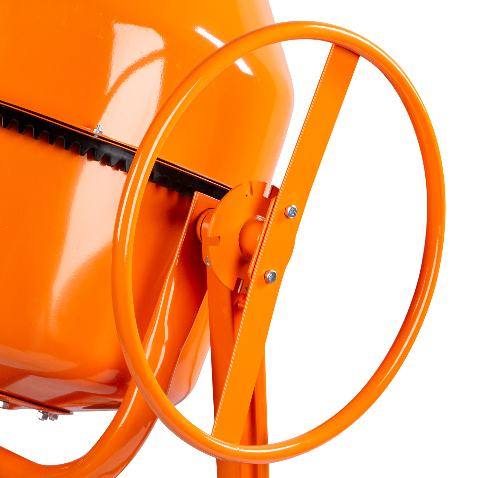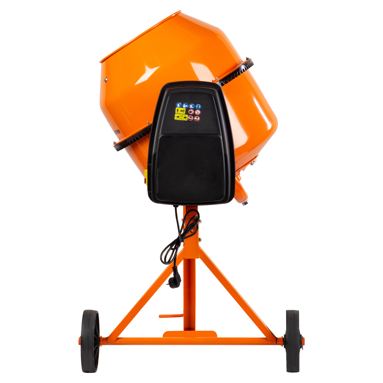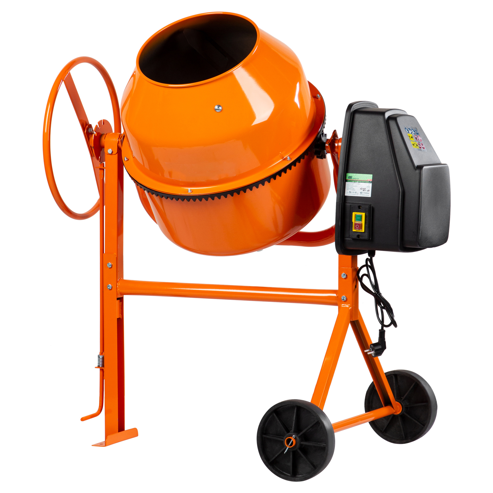 - Удобная транспортировка — колеса диаметром 20,5 см повышают маневренность бетоносмесителя и помогают без лишних усилий доставить его в нужное место.