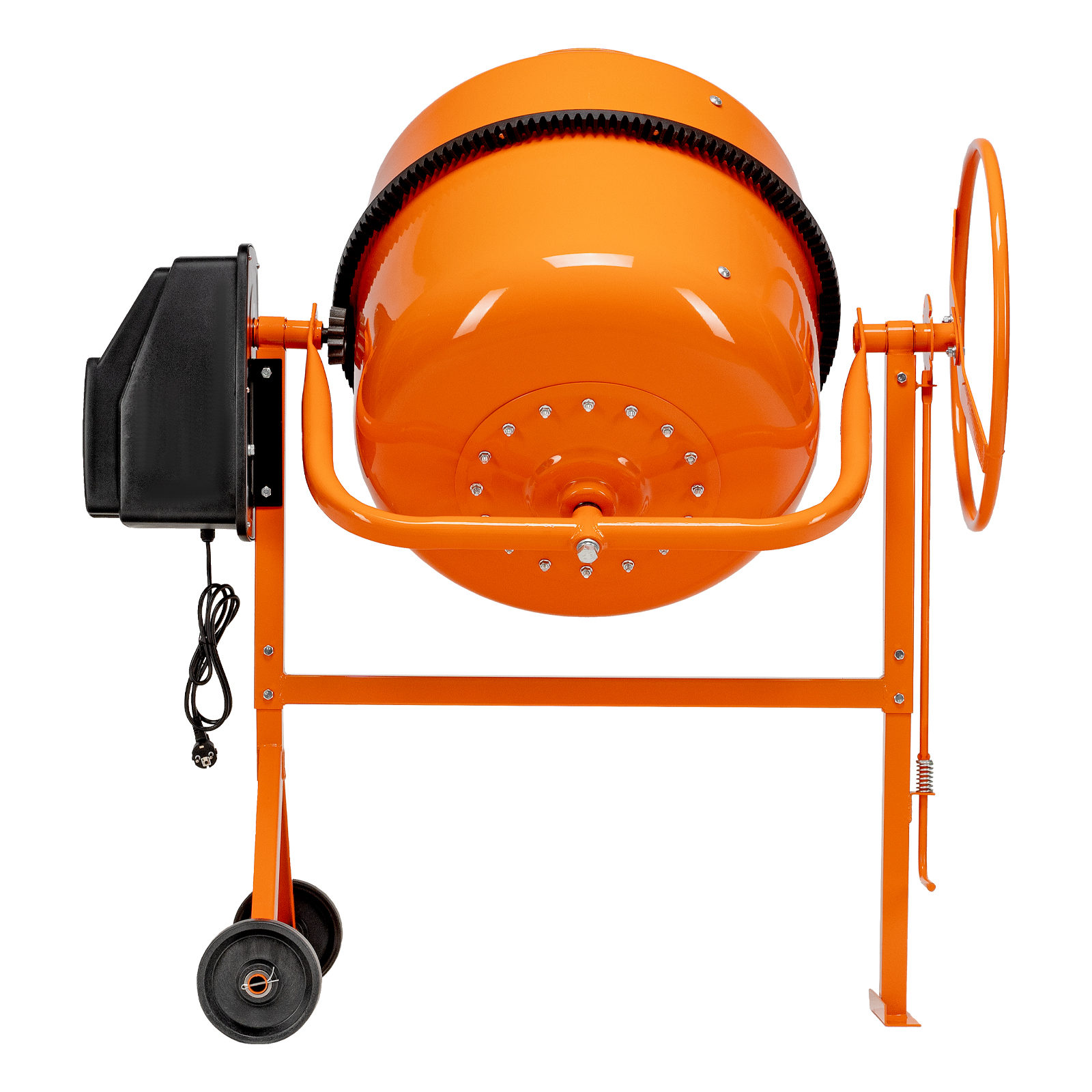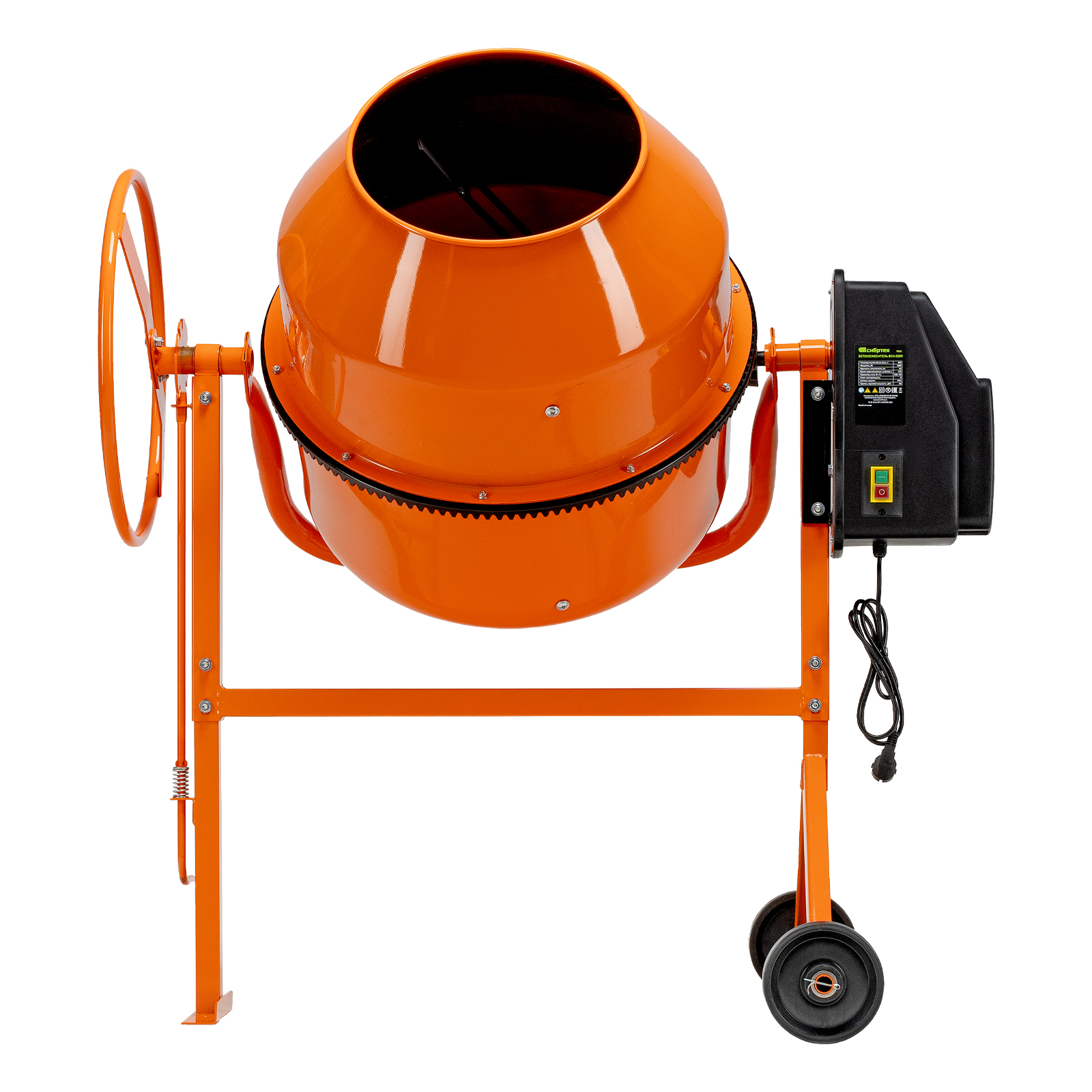 - Удобная загрузка и выгрузка смеси — барабан наклоняется при помощи маховика и легко фиксируется в нужном положении.