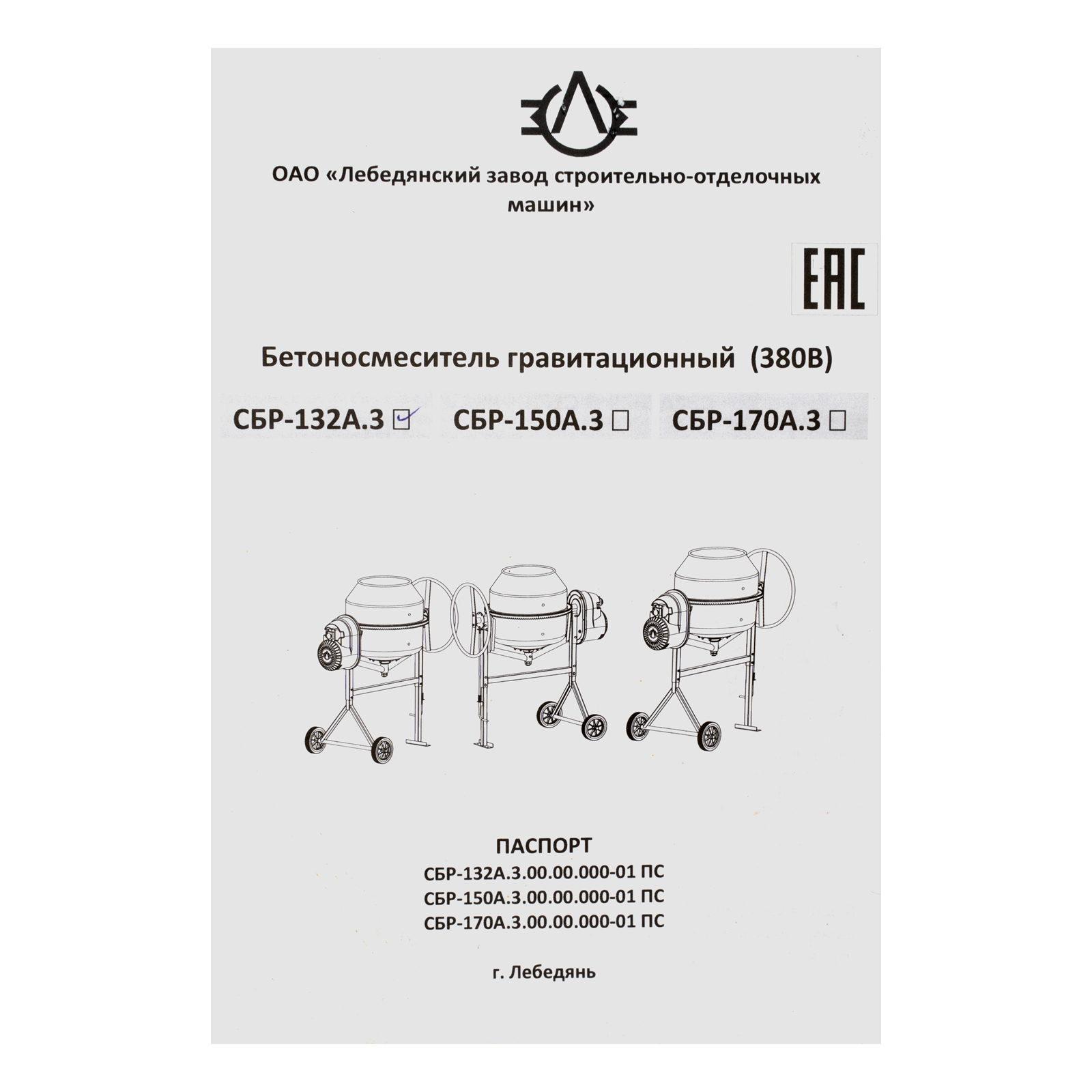 Бетоносмеситель СБР-132А.3-01, 132 л, 1 кВт, 380 В в Воронеже