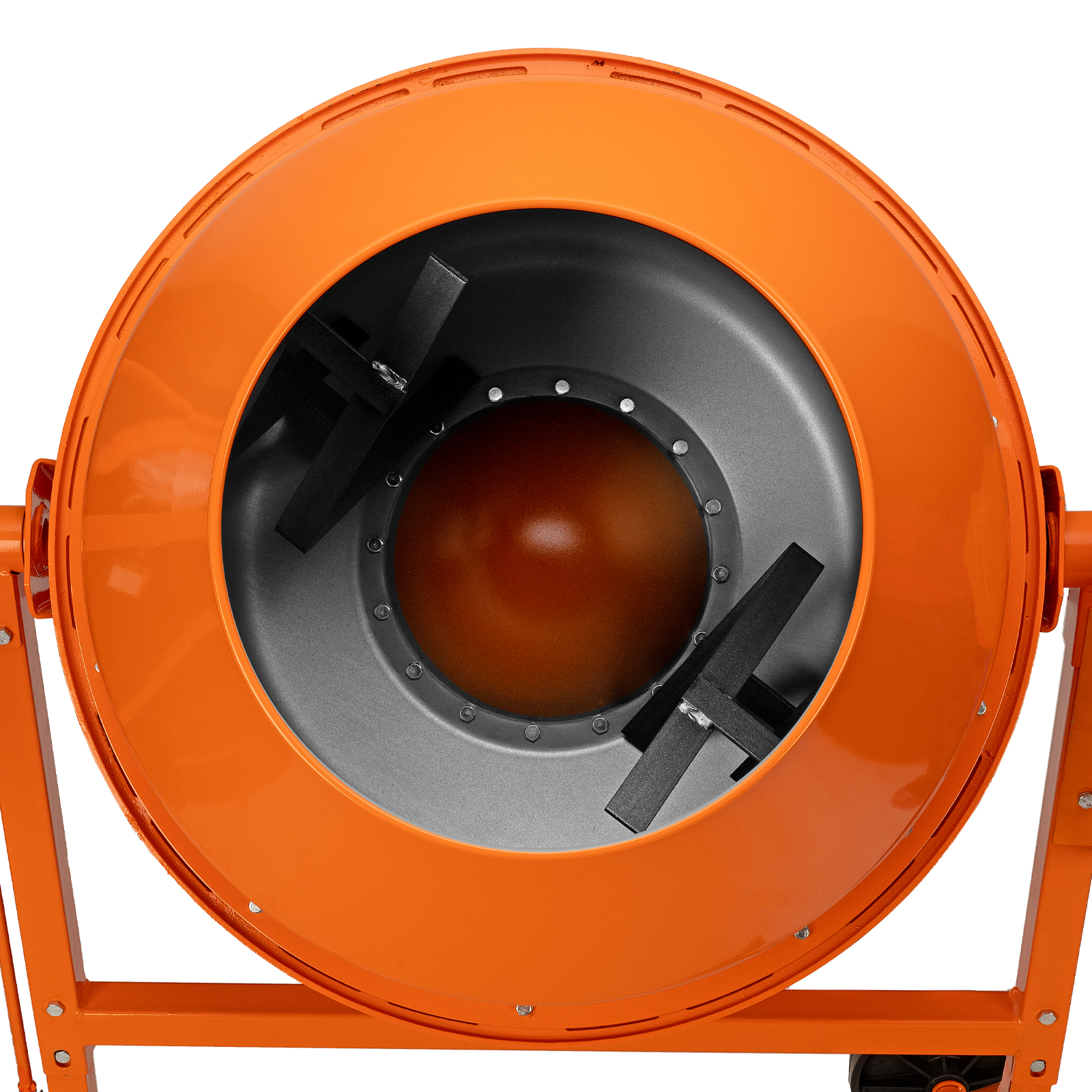 - Надежная конструкция — чугунный венец отличается прочностью, усиленная рама обеспечивает устойчивое положение полностью загруженного бетоносмесителя.
