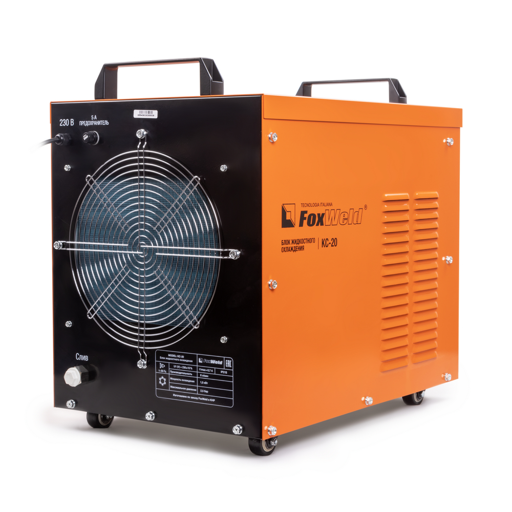 Внешний блок охлаждения КС-20 предназначен для работы с машинами контактной сварки серии МТ. Данное устройство - это автономный блок жидкостного охлаждения для обеспечения охлаждения и циркуляции рабочей жидкости в замкнутой системе при работе с машинами контактной сварки. При разработке данных устройств были применены запатентованные технические решения, которые позволили добиться возможности стабильного функционирования в любых условиях.РАБОТА БЕЗ ОСТАНОВКИ: Параметр ПВ 100% на максимальном токе обеспечивает бесперебойную устойчивую работу блока жидкостного охлаждения в течении всего рабочего дня. Это позволяет производить безостановочный сварочный процесс и выполнять работы, которые требуют больших временных затрат, что повышает скорость и производительность.ПРЕИМУЩЕСТВА:Высокоточный цифровой дисплей для отслеживания температуры и уровня охлаждающей жидкостиФункция сигнализации о нехватке и большого уровня жидкости, которая может обеспечить эффективную защиту сварочного оборудованияУдобное наполнение и слив охлаждающей жидкостиУвеличенные радиатор и вентилятор охлаждающего контураТеплообменник, рассчитанный на высокую температуру жидкостиКОМПЛЕКТАЦИЯ: Блок охлаждения КС-20 – 1 шт.; Шланг – 2 шт.; Соединительные гайки 16х1,5 мм – 2 шт.; Предохранитель 5 А – 1 шт.; Хомуты – 4 шт.; Инструкция + Гарантийный талон – 1 компл.
