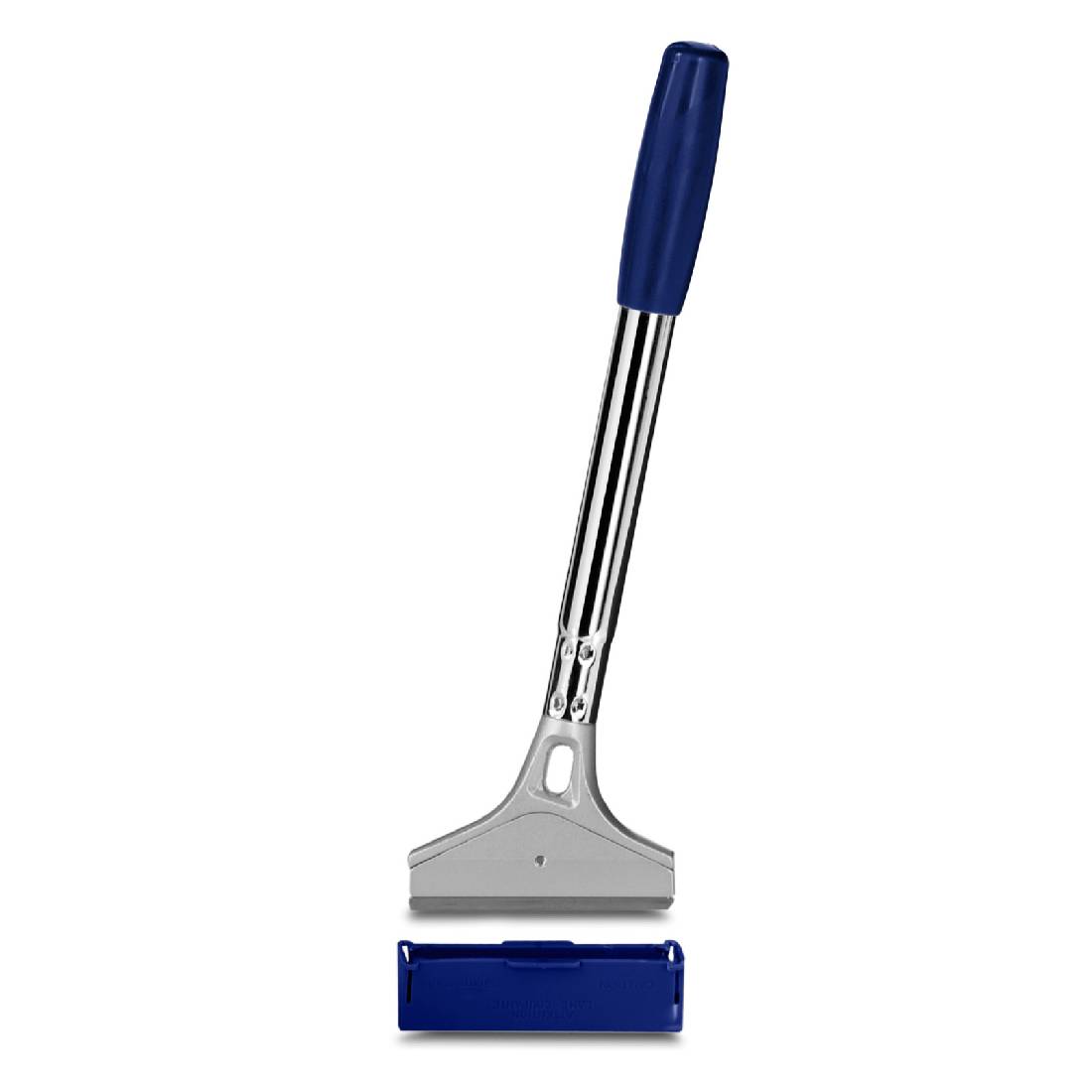 Универсальный скребок предназначен для оттирки твердых въевшихся загрязнений с поверхности плитки, камня, линолеума, а также очистки зеркал и стеклянных поверхностей. Скребок оборудован эргономичной рукояткой (25 см), в которой закреплено металлическое лезвие. В целях безопасности предусмотрена крышка для лезвия.