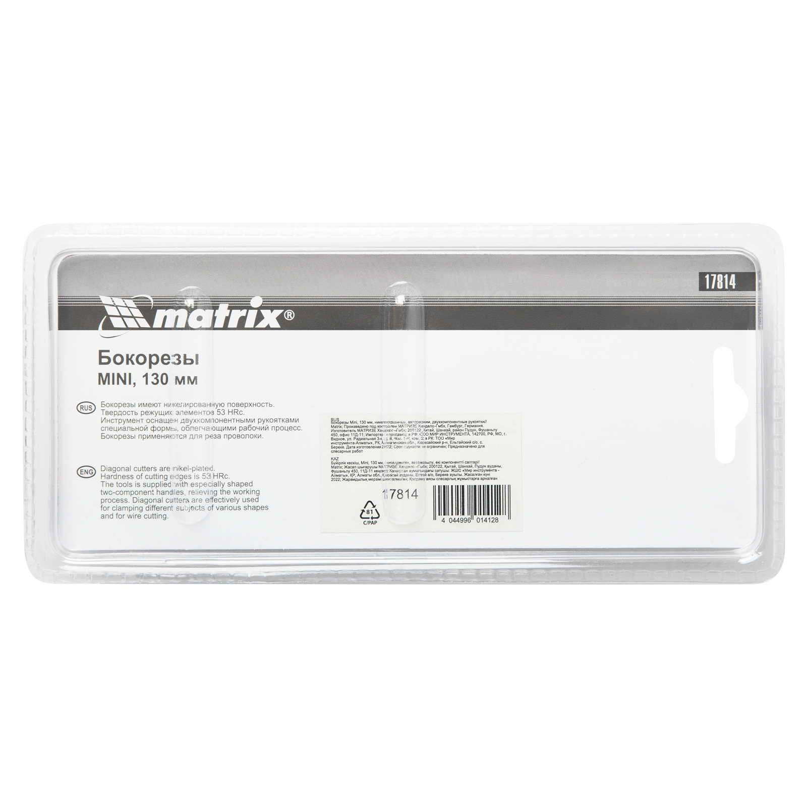 Никелированные бокорезы Matrix Mini 17814 длиной 130 мм, с двухкомпонентными рукоятками и авторазжимом, служат для перерезания проводов, кабелей и проволоки. Пригодятся сетевым инженерам, строителям, автомеханикам и домашним мастерам для проведения монтажных работ. Компактные размеры бокорезов 130 х 85 х 25 мм позволяют обрезать провода в труднодоступных местах без потери точности.