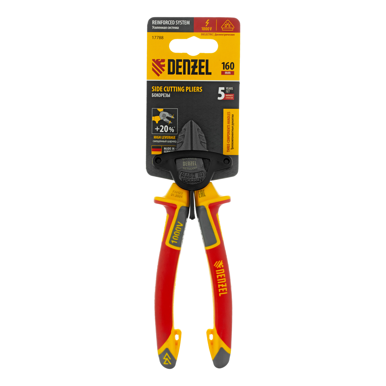 Бокорезы, диэлектрические рукоятки, до 1000 В, трехкомпонентные рукоятки, 160 мм Denzel в Воронеже