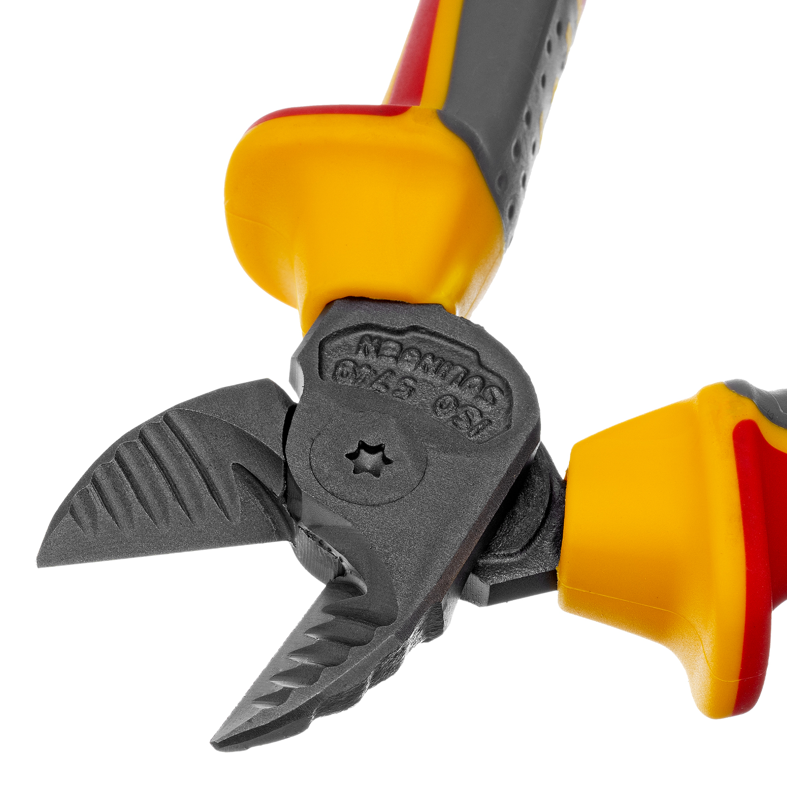 Бокорезы Denzel 17788 длиной 160 мм, с трехкомпонентными диэлектрическими рукоятками, рассчитанными на напряжение до 1000 В, предназначены для разрезания кабелей, проводов, проволоки, стержней из пластмассы и металла. Максимальный диаметр перерезаемой мягкой проволоки (алюминиевой, медной, с пределом прочности 220 Н/мм2) составляет 6 мм, проволоки средней жесткости и гвоздей (750 Н/мм2) — 3,5 мм, жесткой (1800 Н/мм2) — 2 мм. Бокорезы подходят для проведения электромонтажных работ. Инструмент эффективно справляется с поставленными задачами благодаря шарниру, смещенному к режущим кромкам и увеличивающему усилие реза на 20%.