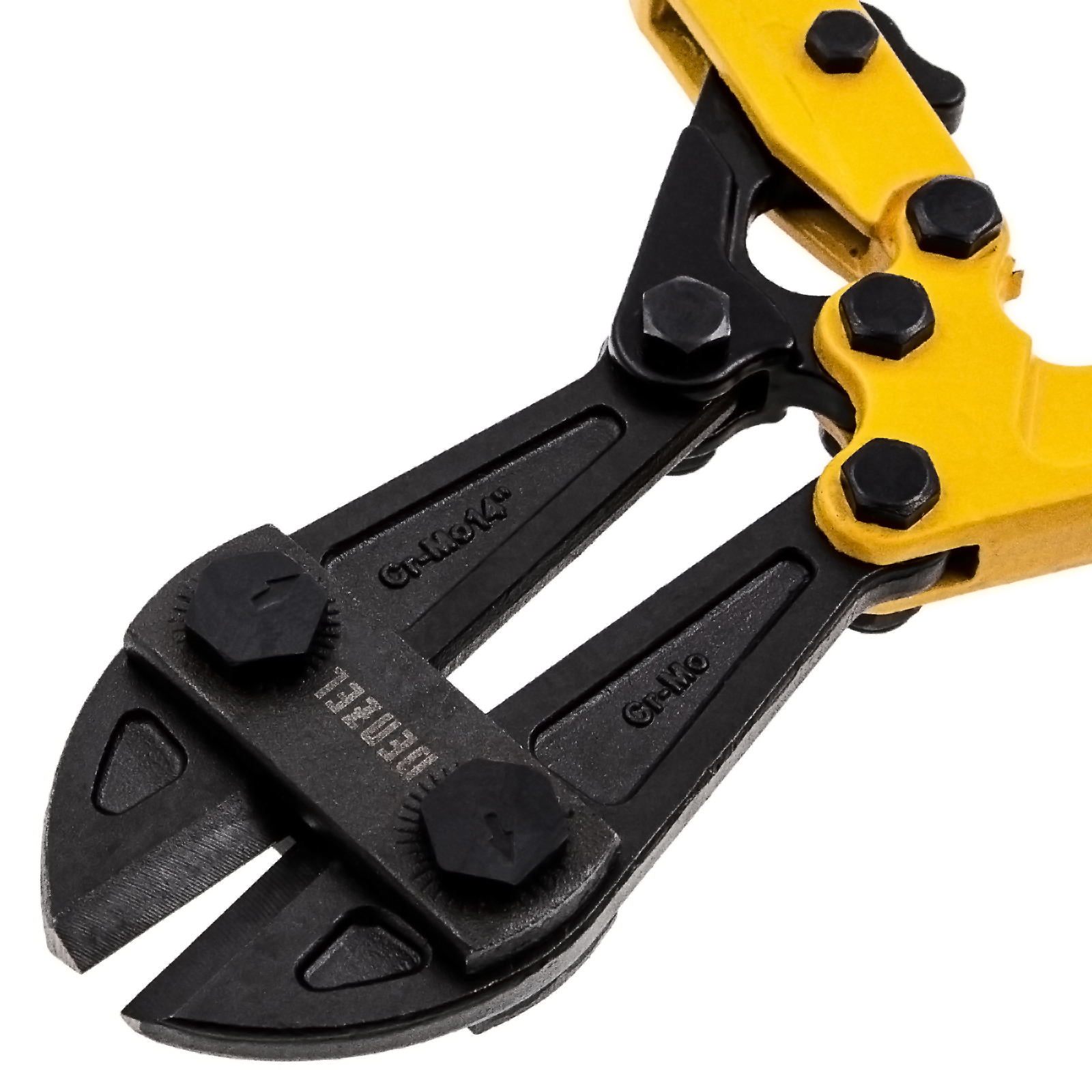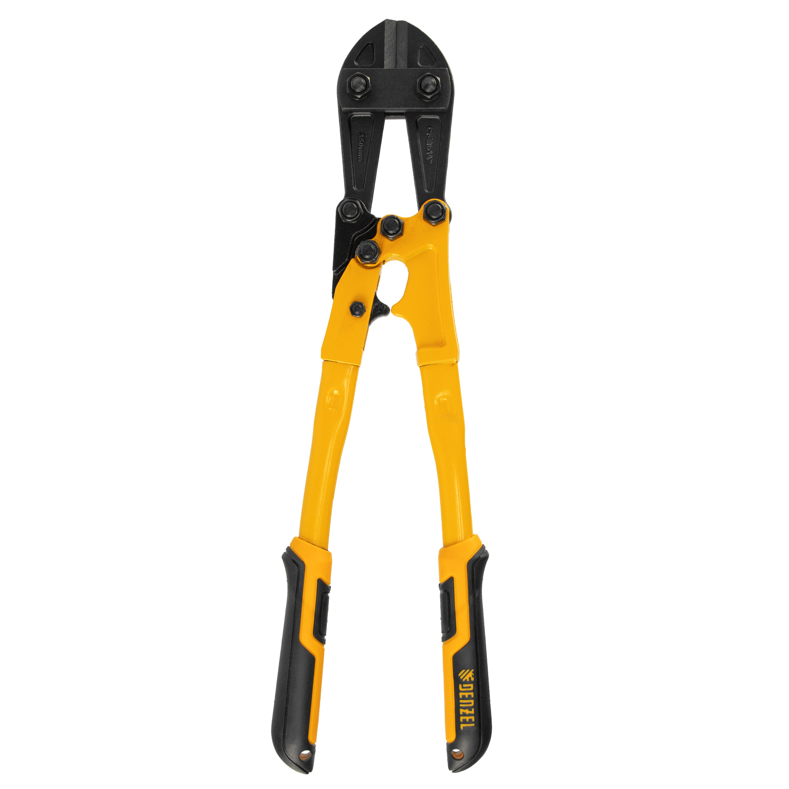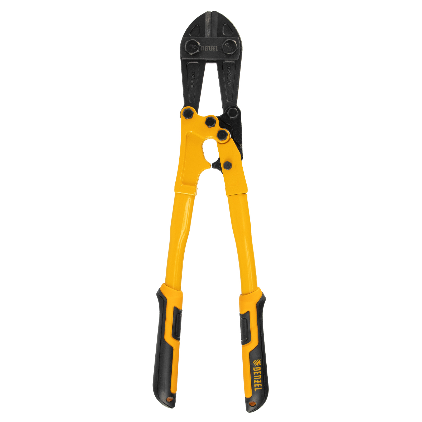 Болторез Denzel 78533 длиной 350 мм (14 дюймов), из стали Cr-Mo, предназначен для перекусывания стальных прутков диаметром 6,4 мм, болтов и шурупов, тросов, разнородной проволоки.