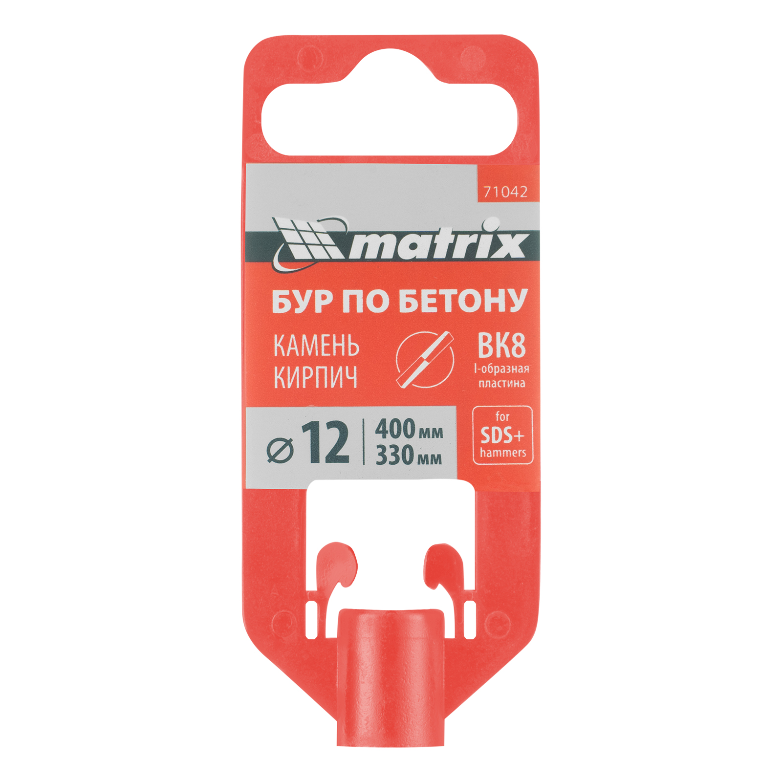Бур по бетону Matrix 71042, 12 х 400 мм, SDS PLUS предназначен для установки на перфоратор и позволяет получать отверстия диаметром 12 мм в бетоне, камне и кирпиче. Он эффективно решает поставленные задачи благодаря режущей пластине из высокотвердого сплава карбида вольфрама ВК8 твердостью 80-90 HRC.
