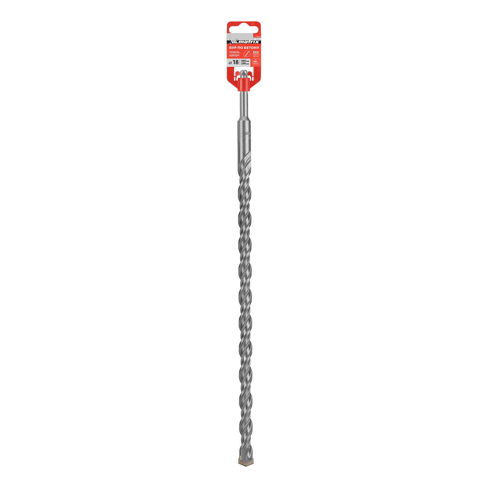 Бур по бетону Matrix 710068 длиной 460 мм, с хвостовиком SDS-plus, предназначен для установки на перфоратор и получения отверстий диаметром 18 мм в бетоне, камне и кирпиче. Позволяет эффективно решать поставленные задачи благодаря режущей пластине из высокотвердого сплава карбида вольфрама ВК8 твердостью 80-90 HRC.