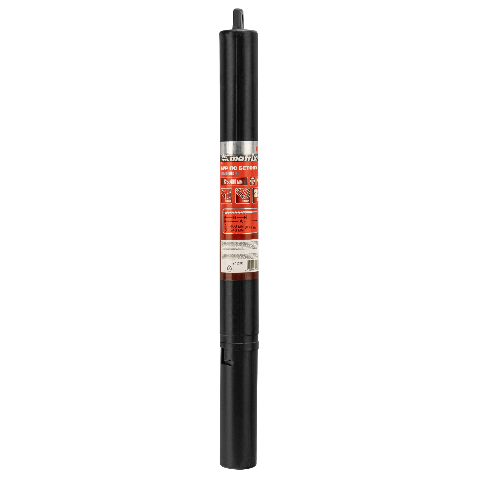 Бур по бетону Matrix 71238 размером 32 х 400 мм используется в качестве оснастки на тяжелых перфораторах с хвостовиком SDS MAX. Подходит для сверления глубоких отверстий в кирпиче и особо прочных материалах: армированном бетоне, природном и искусственном камне.