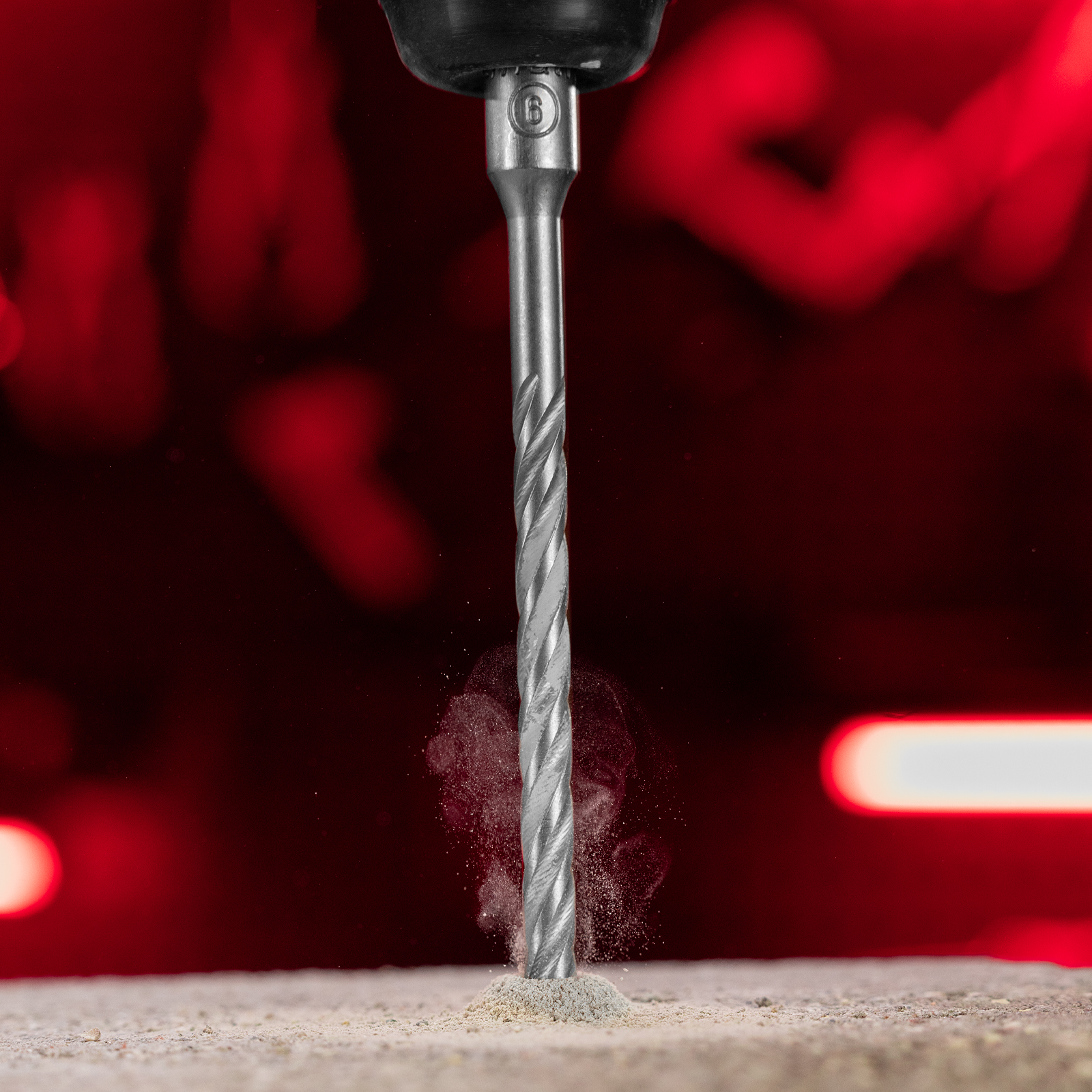 - Высокий ресурс — крестовая режущая пластина из сверхтвердого сплава карбида вольфрама 80–90 HRC долговечна, эффективно сверлит камень и не ломается при попадании в арматуру.