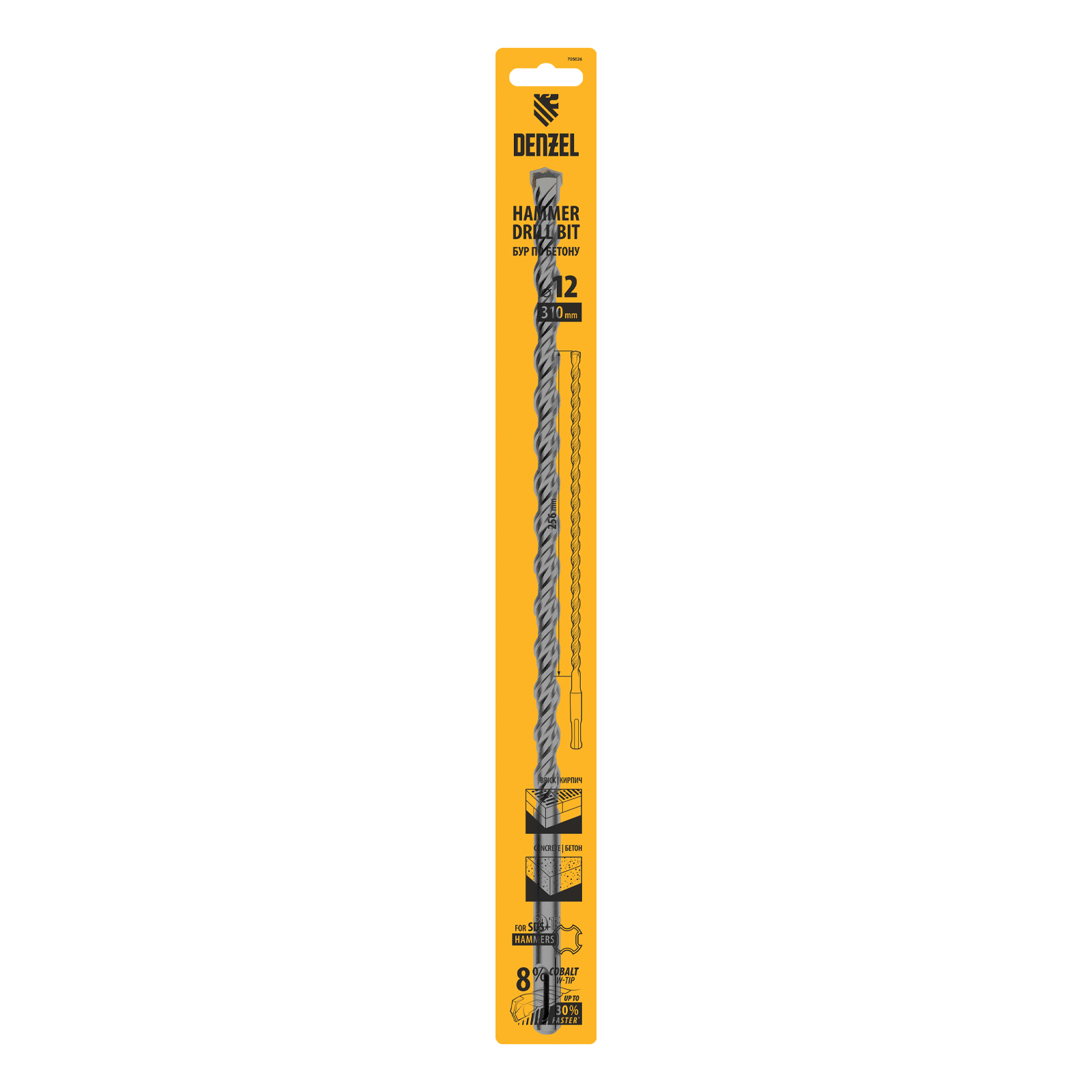 Бур по бетону Denzel Cobalt W-tip 705026 размером 12 х 310 мм, с хвостовиком SDS-plus и двойной спиралью, предназначен для сверления бетона, кирпича и камня. Используется в качестве оснастки для перфораторов с патроном SDS-plus. Бур оптимален для проведения строительных, ремонтных, монтажных работ.