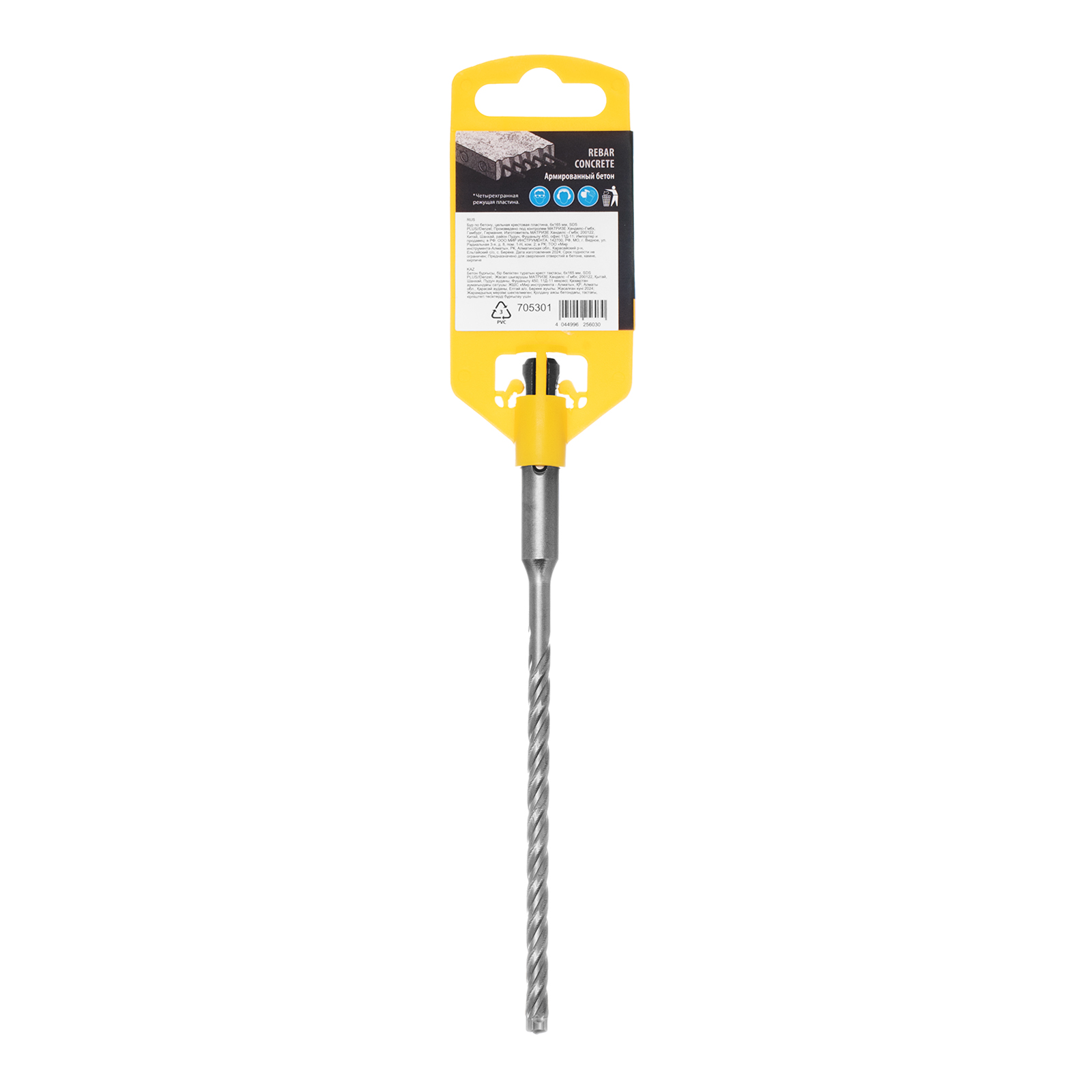 Бур по бетону Denzel 705301 длиной 165 мм, с цельной крестовой пластиной и хвостовиком SDS-plus — оснастка для перфораторов, предназначенная для получения отверстий диаметром 6 мм в бетоне, кирпиче, камне. Благодаря цельному карбидному наконечнику с 4 режущими кромками бур оптимален для работы с материалами высокой твердости, в том числе с армированным бетоном. Оснастка превосходит большинство аналогов по своим рабочим качествам и подходит для профессионального использования.