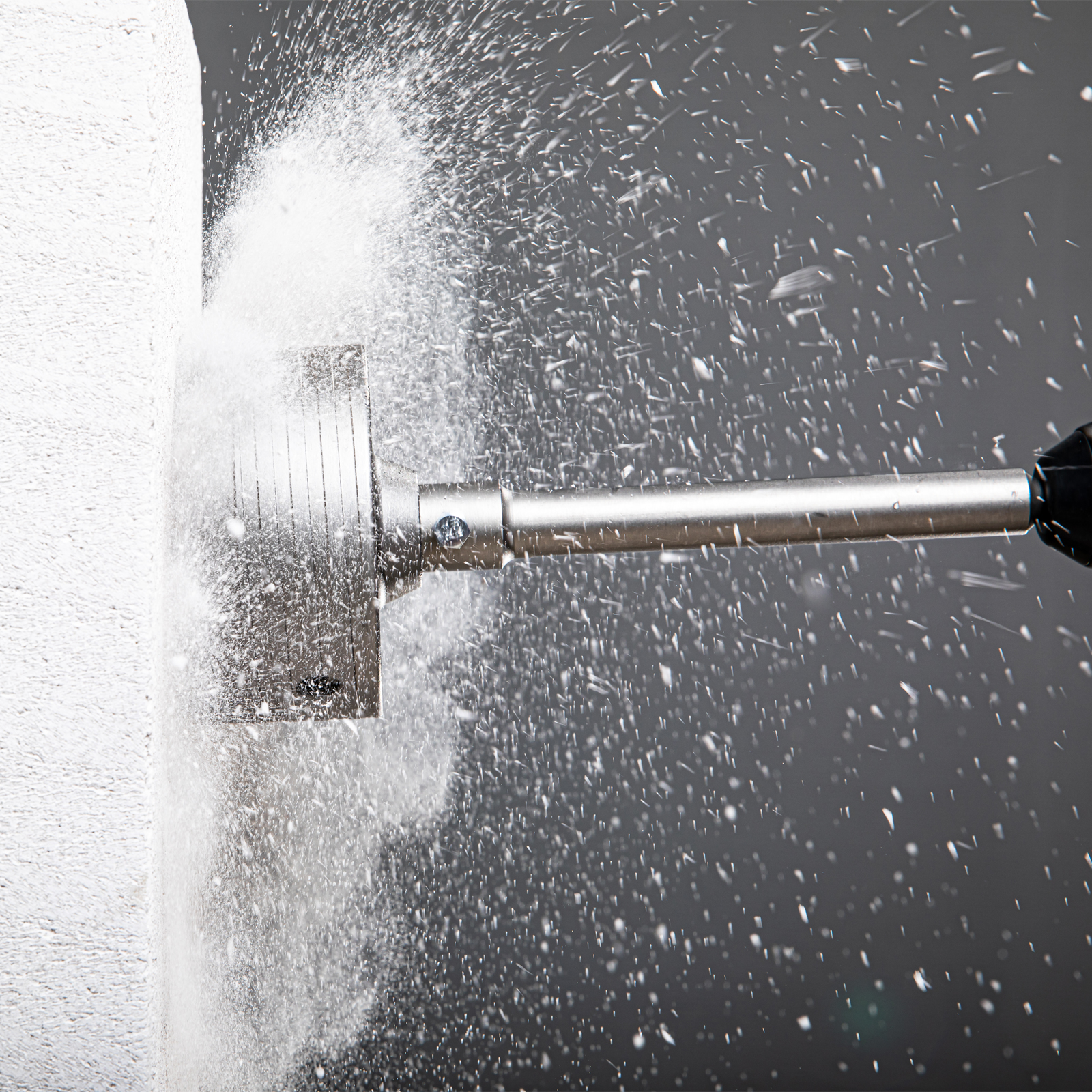 - Эффективность — спиральная канавка на корпусе обеспечивает улучшенный отвод продуктов сверления, что снижает нагрузку на перфоратор и повышает скорость работы.