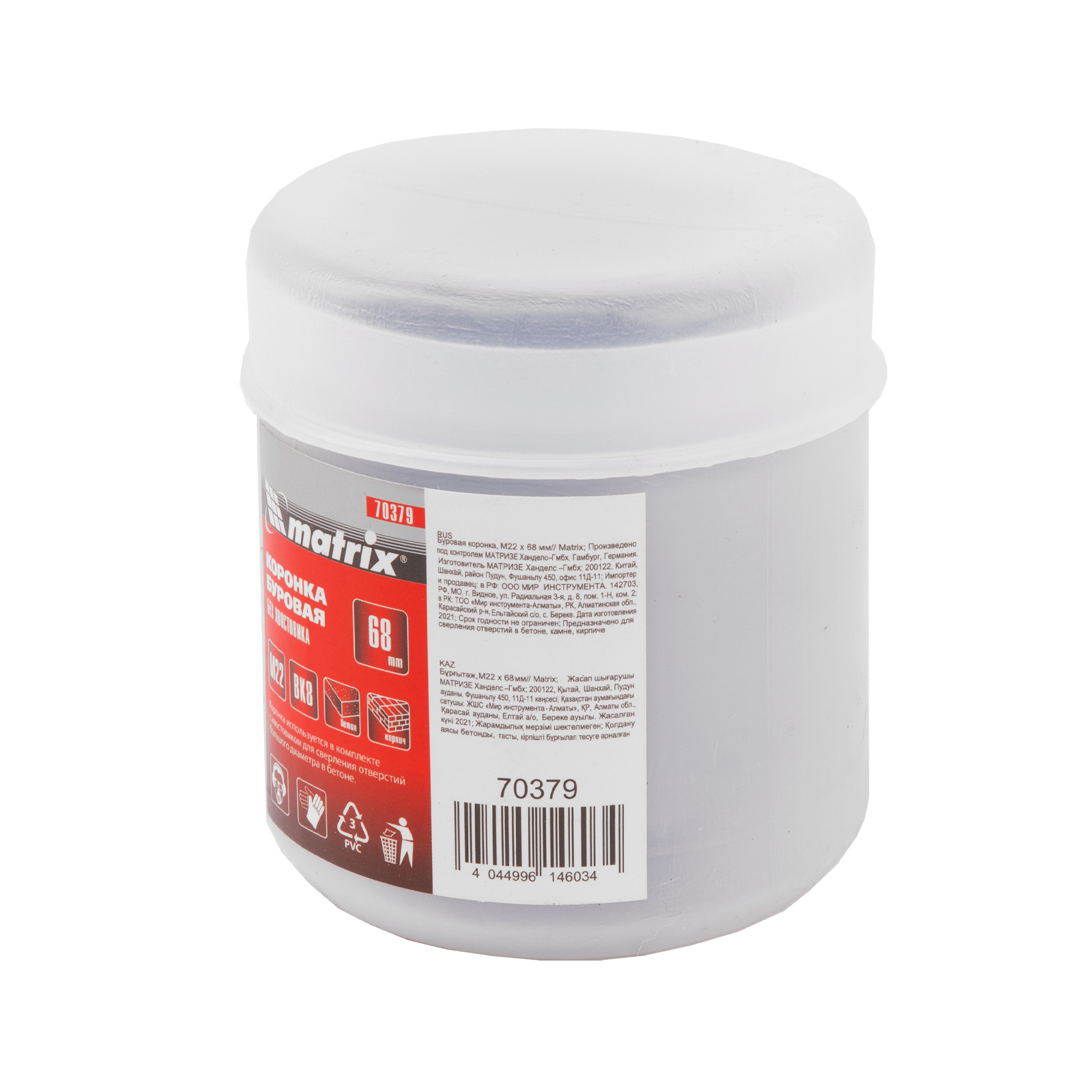 Буровая коронка Matrix 70379 с посадкой M22, диаметром 68 мм, рассчитана на сверление отверстий в бетоне, кирпиче, граните, природном и искусственном камне. Устанавливается на ударные дрели или перфораторы с патронами под хвостовик SDS-Plus или SDS-Max. Коронка позволяет получить большие отверстия, поэтому пригодится для монтажа розеток, выключателей и прокладки труб.
