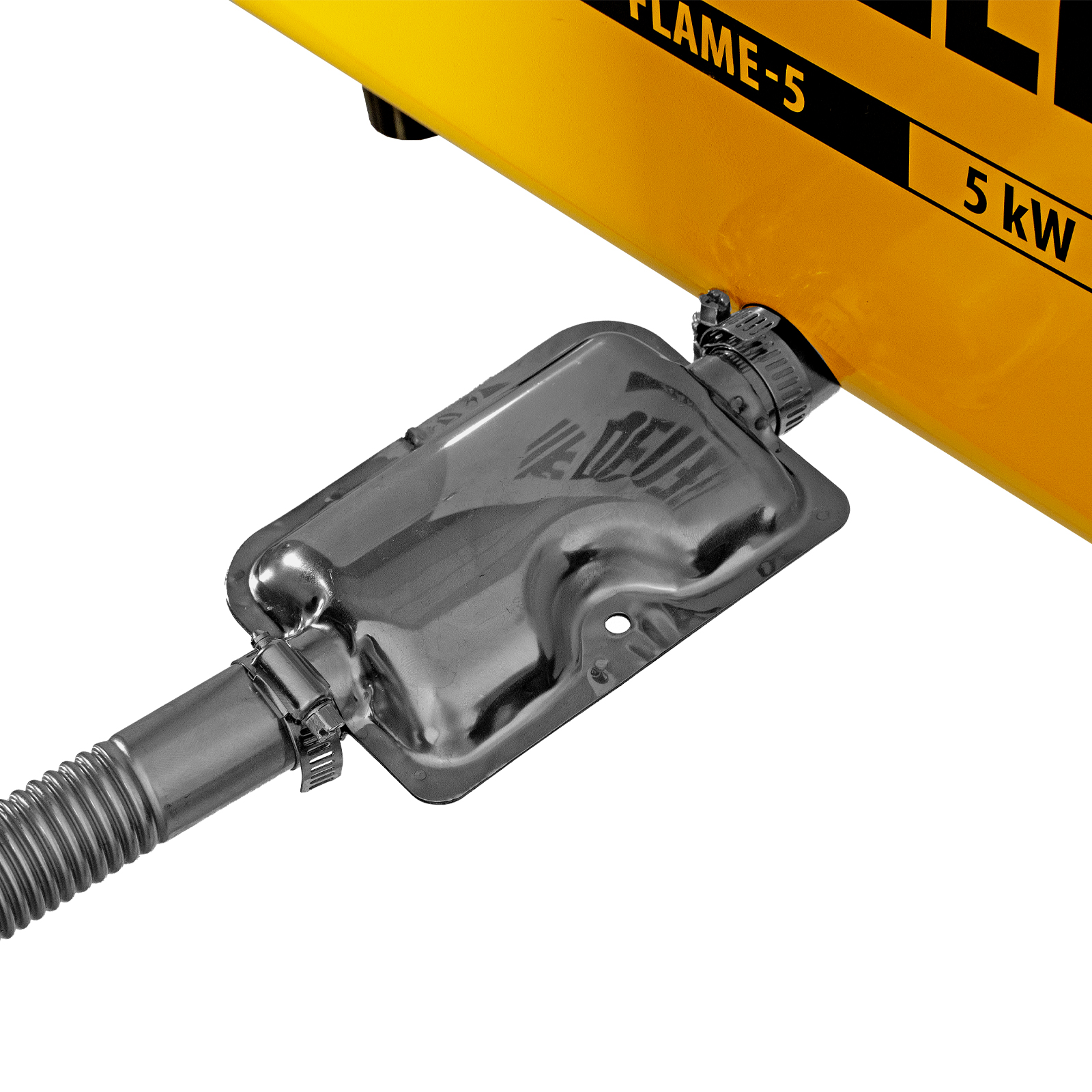 Дизельная тепловая портативная пушка Denzel Flame-5 96495 представляет собой автономный отопитель с максимальной мощностью 5 кВт, с цифровым термостатом. Работает по принципу непрямого нагрева, то есть выхлопные газы выводятся отдельно, не смешиваясь с потоком теплого воздуха. Предназначена для обогрева жилых, бытовых, подсобных и строительных помещений площадью до 50 м2. Портативную пушку размером 412 х 250 х 340 мм удобно перемещать и можно использовать в местах, удаленных от электричества, например, в поездке, походах, на рыбалке и для обогрева автомобиля.