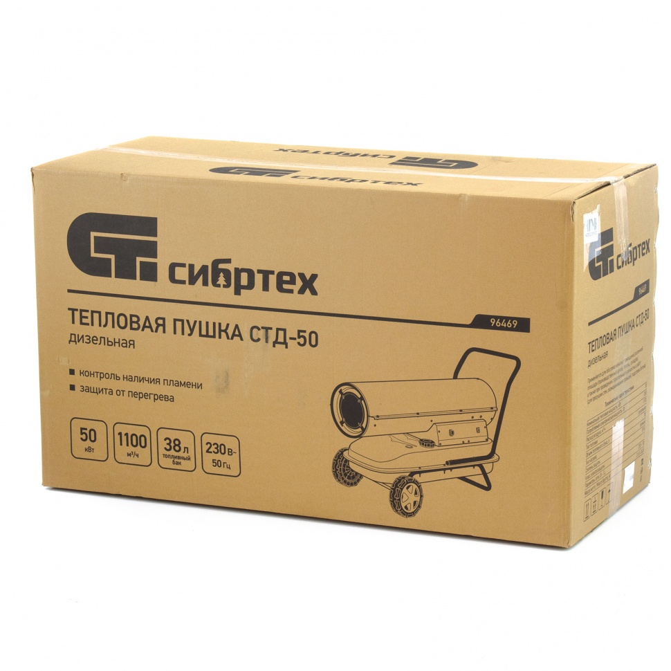 Дизельная тепловая пушка СТД-50, 50 кВт, 1100 м3/ч, прямой нагрев Сибртех в Воронеже