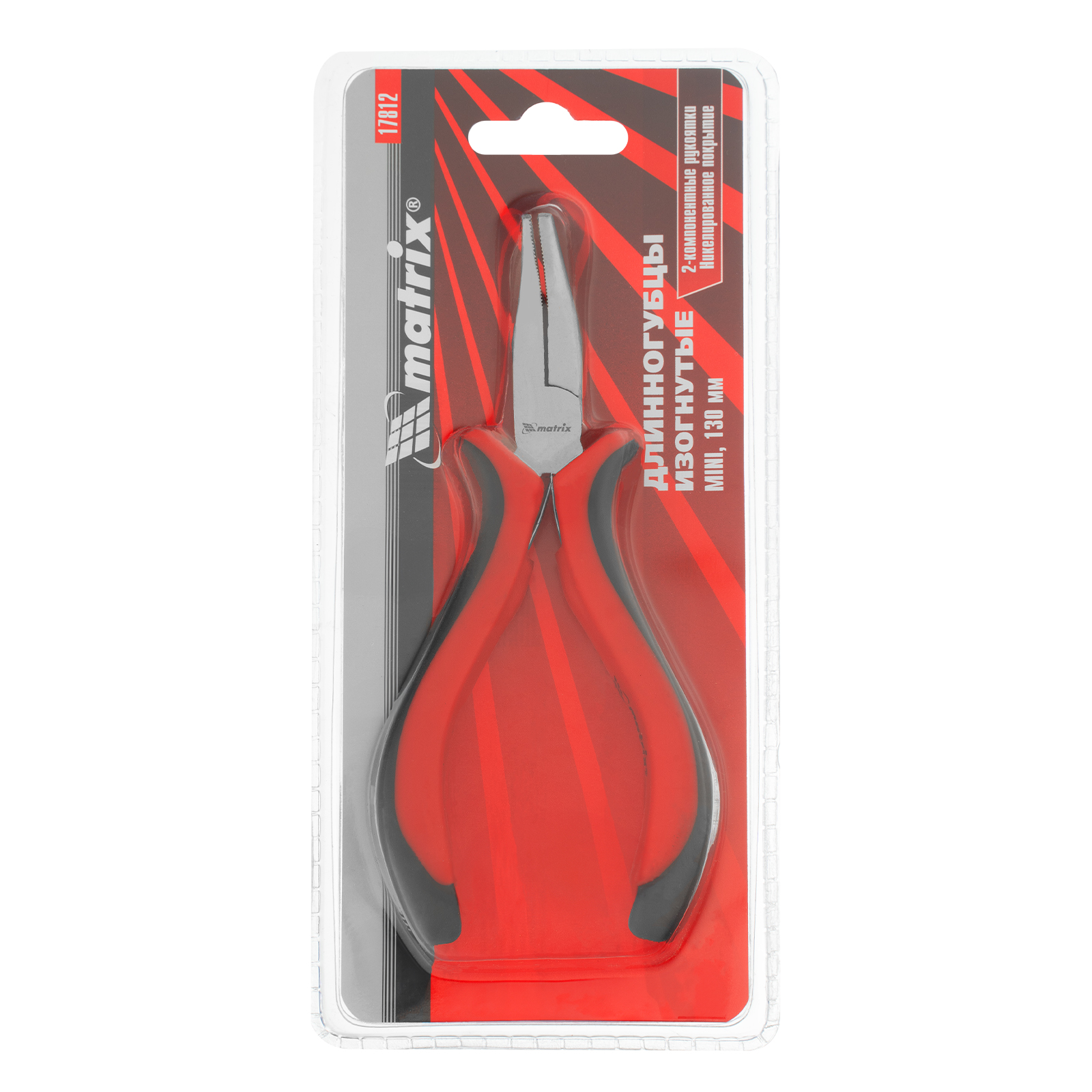 Длинногубцы изогнутые Mini, 130 мм, никелированные, авторазжим, двухкомпонентные рукоятки Matrix в Воронеже