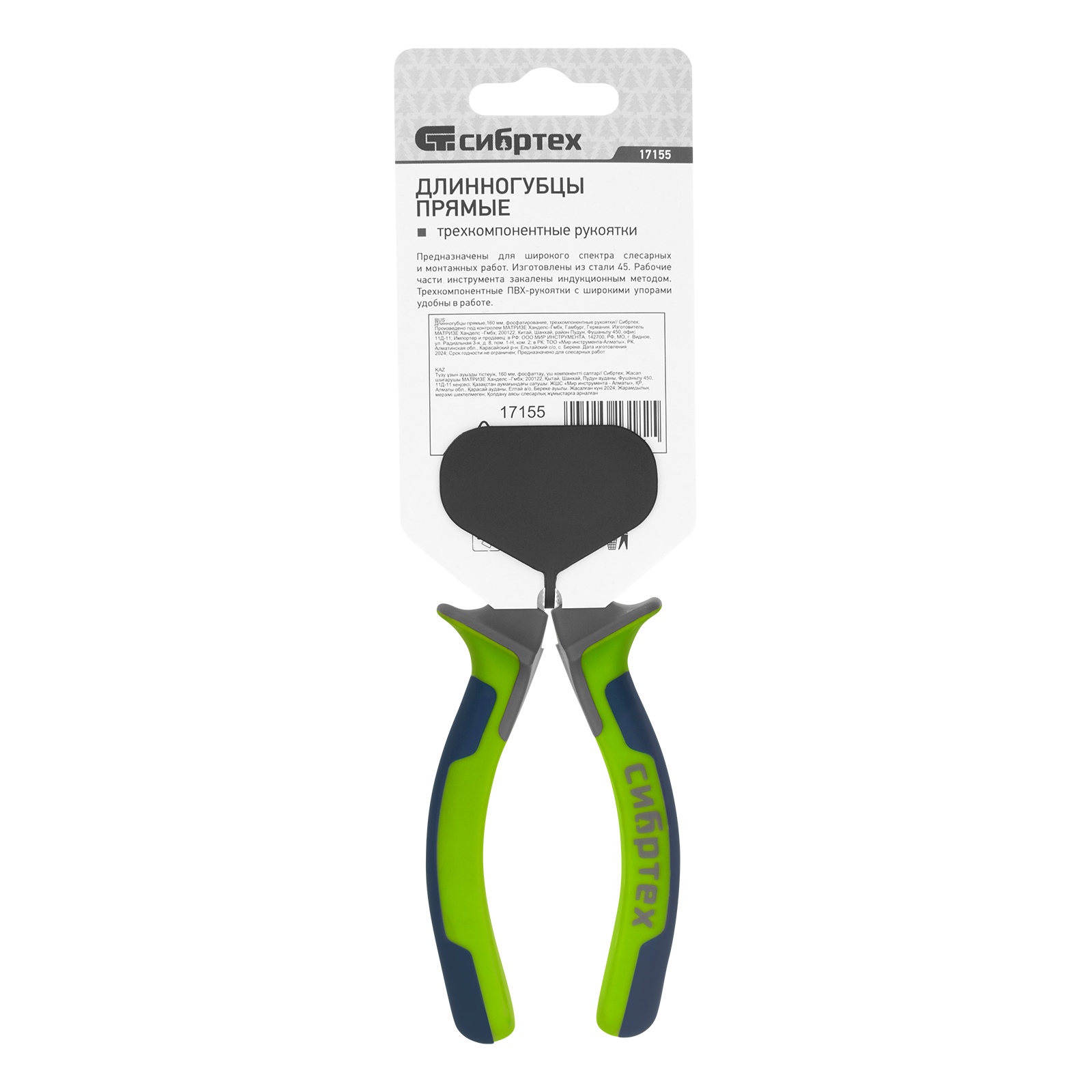Длинногубцы прямые 160 мм, фосфатирование, трехкомпонентные рукоятки Сибртех в Воронеже