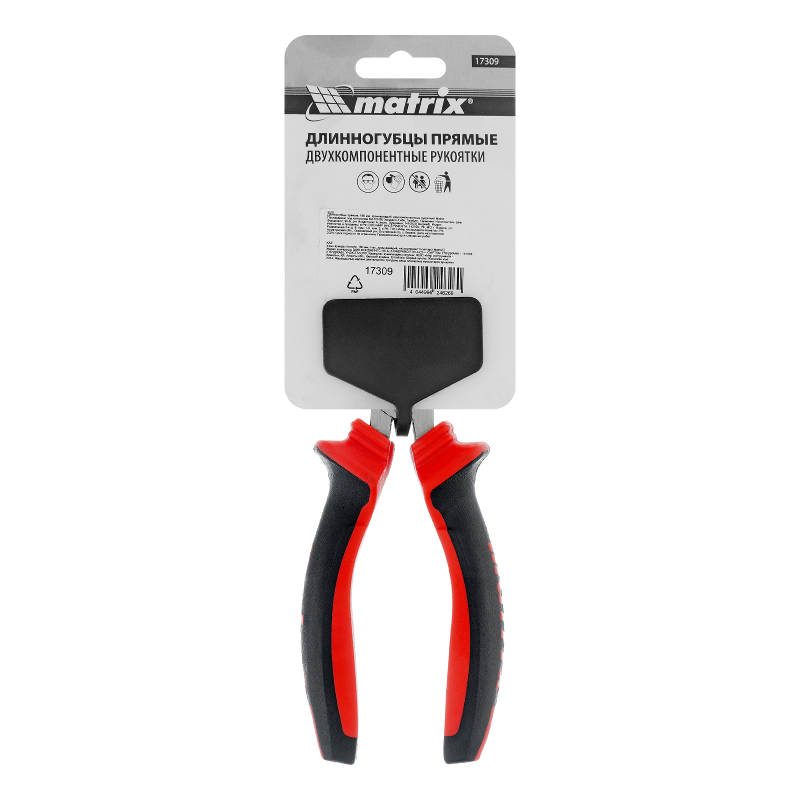 Длинногубцы прямые, 160 мм, хром-ванадий, двухкомпонентные рукоятки Matrix в Воронеже
