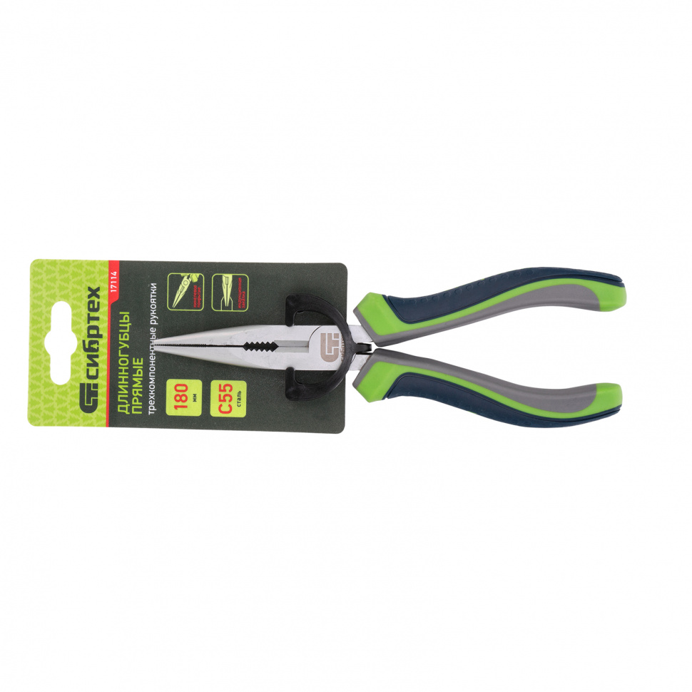 Длинногубцы прямые, 180 мм, трехкомпонентные рукоятки Сибртех в Воронеже