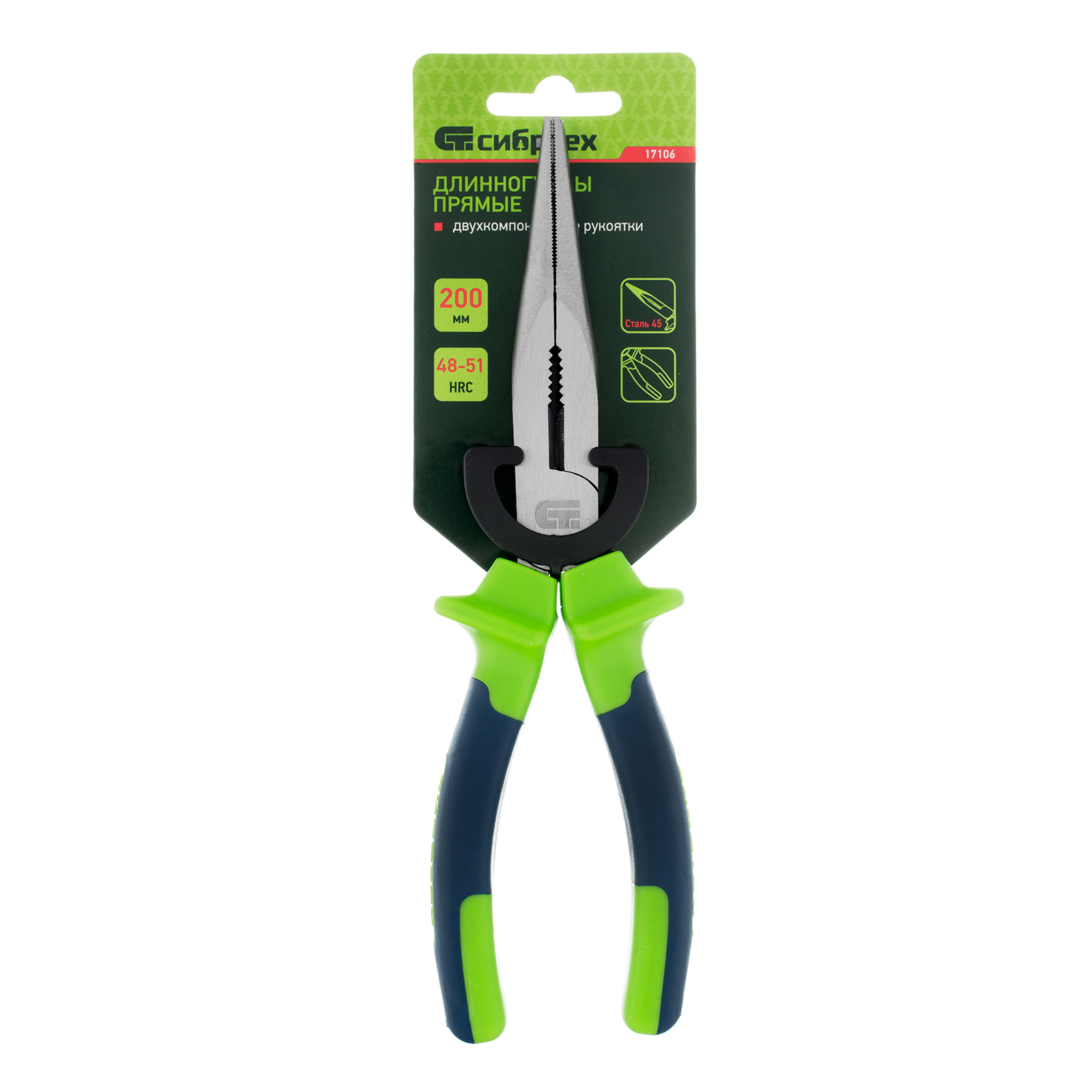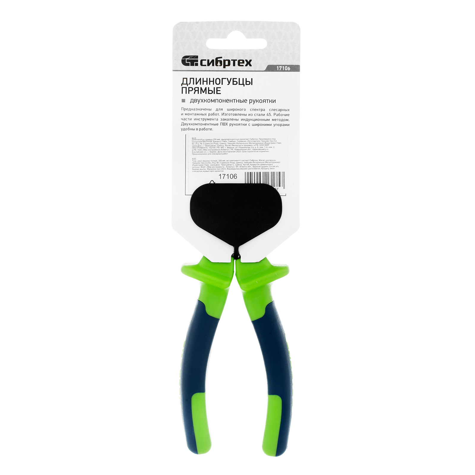 Длинногубцы прямые, 200 мм, двухкомпонентные рукоятки Сибртех в Воронеже