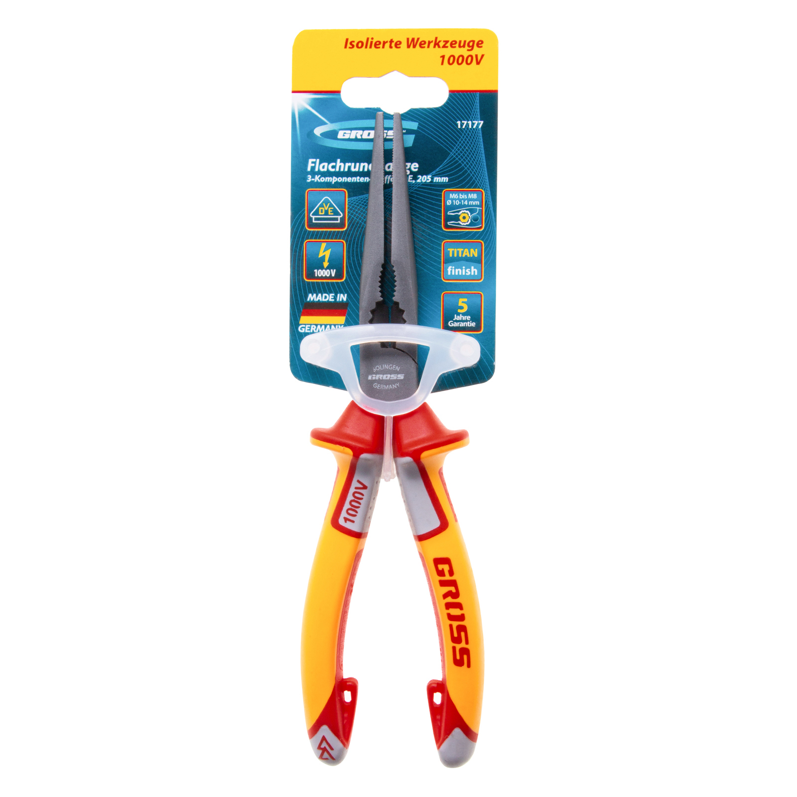 Длинногубцы прямые, диэлектрические рукоятки до 1000 В, трехкомпонентные рукоятки, 205 мм Gross в Воронеже