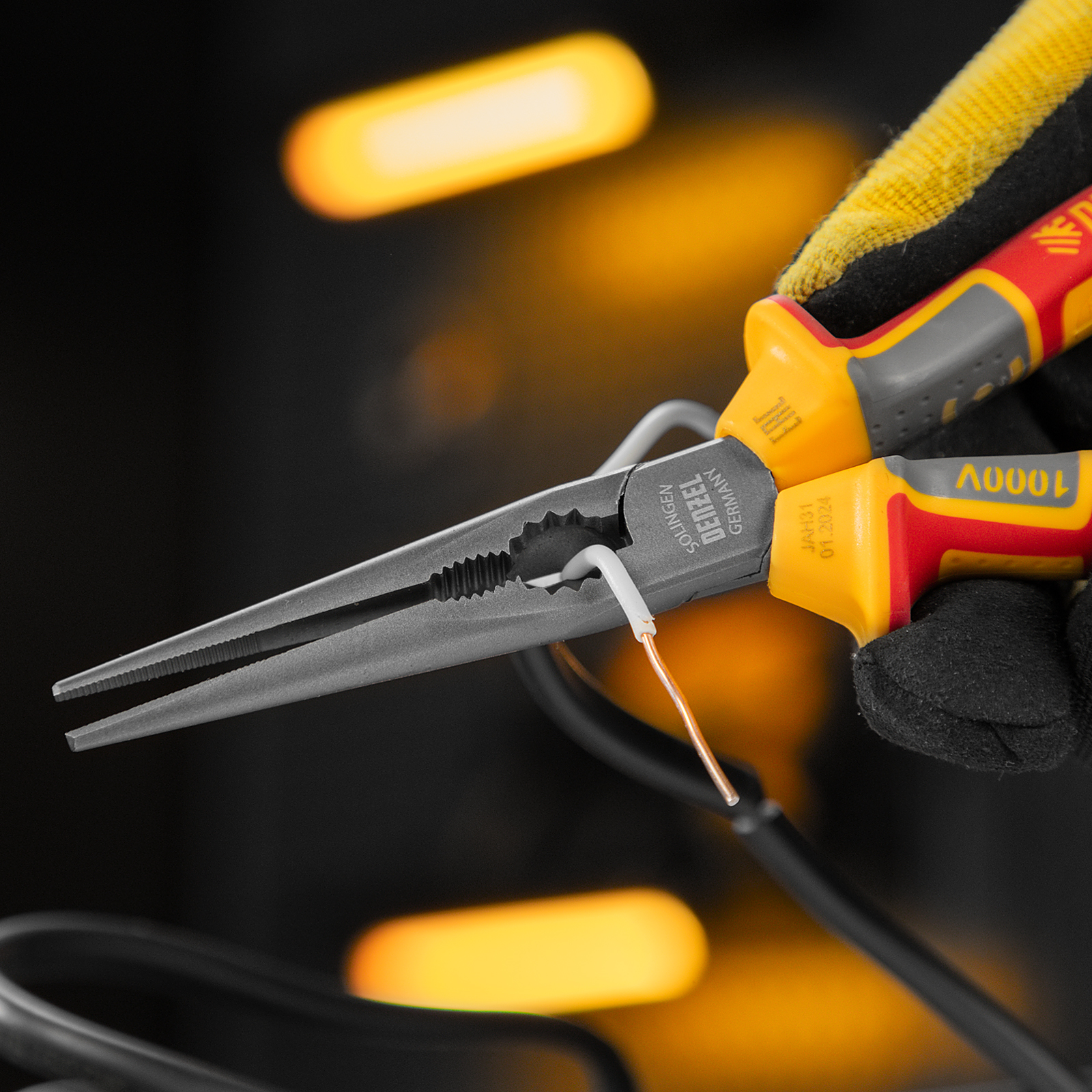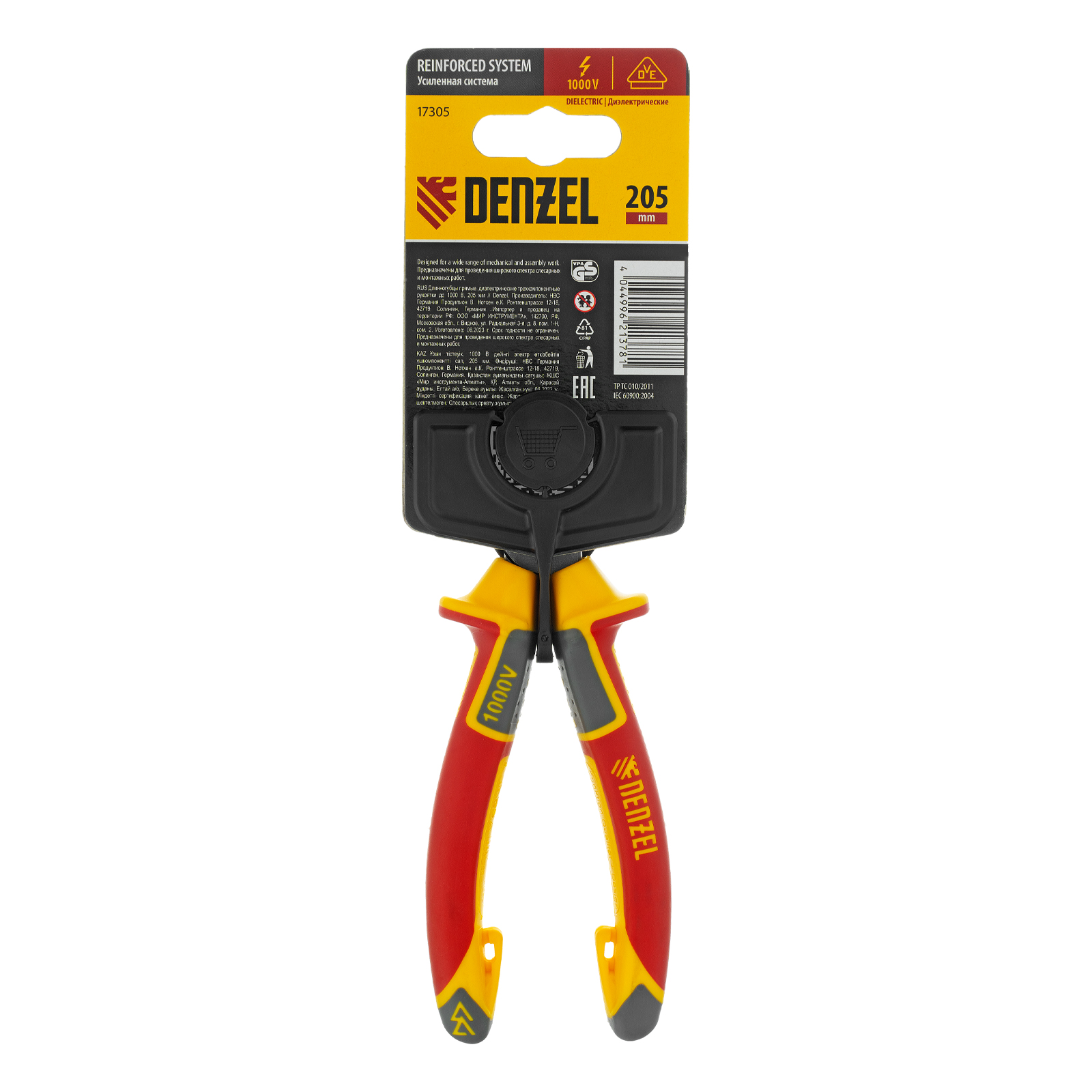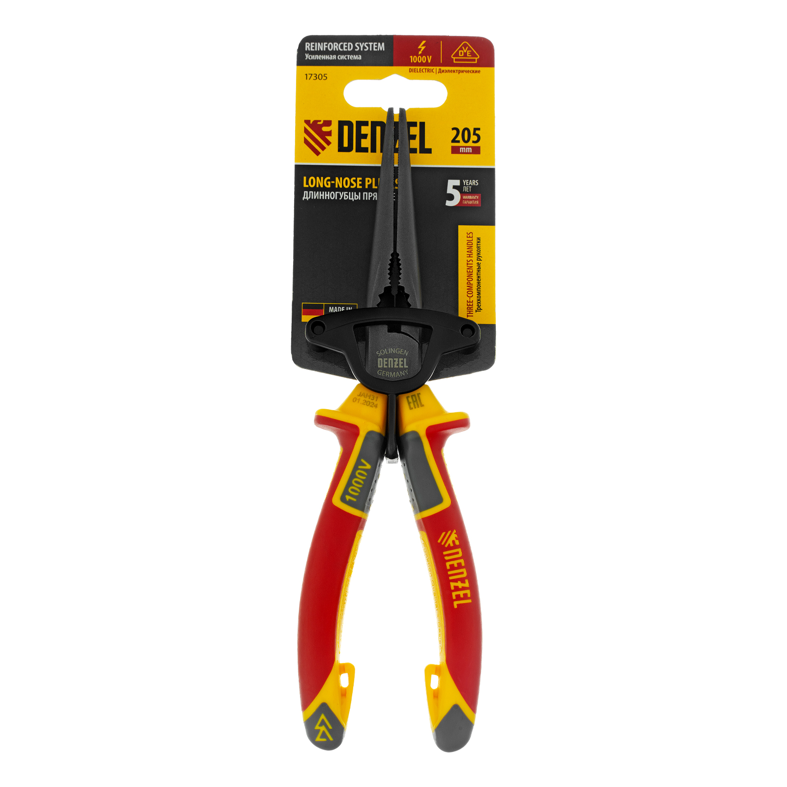 Длинногубцы прямые, диэлектрические рукоятки до 1000 В, трехкомпонентные рукоятки, 205мм Denzel в Воронеже