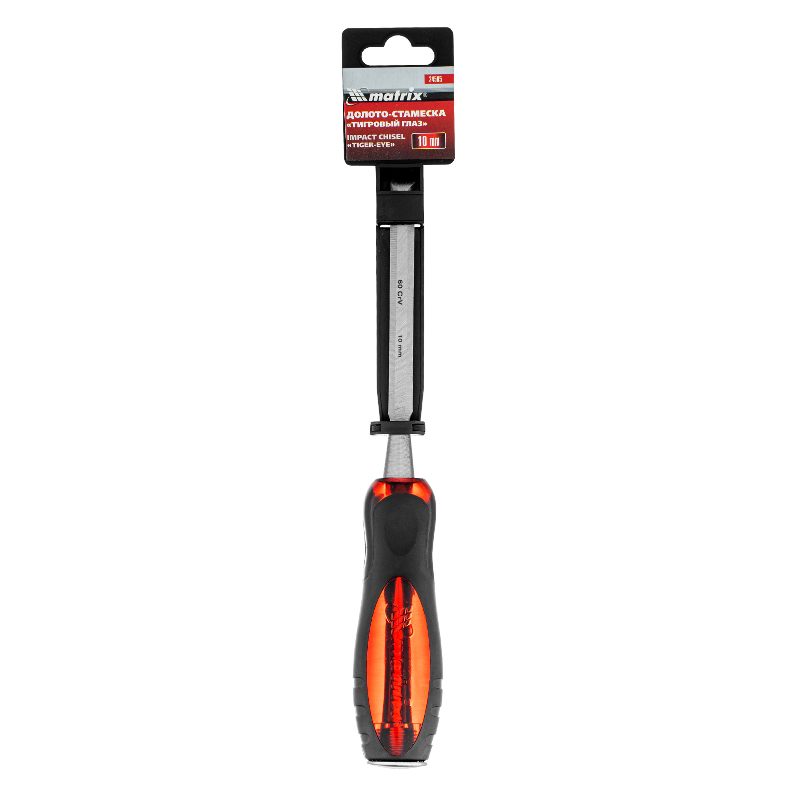 Долото-стамеска Matrix «Тигровый глаз» 24505 с полотном шириной 10 мм и двухкомпонентной обрезиненной рукояткой используется в столярном и плотницком деле, в производстве мебели. Позволяет вырезать углубления, формировать пазы, зачищать шипы и гнезда, снимать фаски. Инструмент выдерживает удары киянкой или молотком, т. к. металлический затыльник защищает его от деформации. Долото относится к профессиональному ручному инструменту, но может применяться и в домашних условиях.