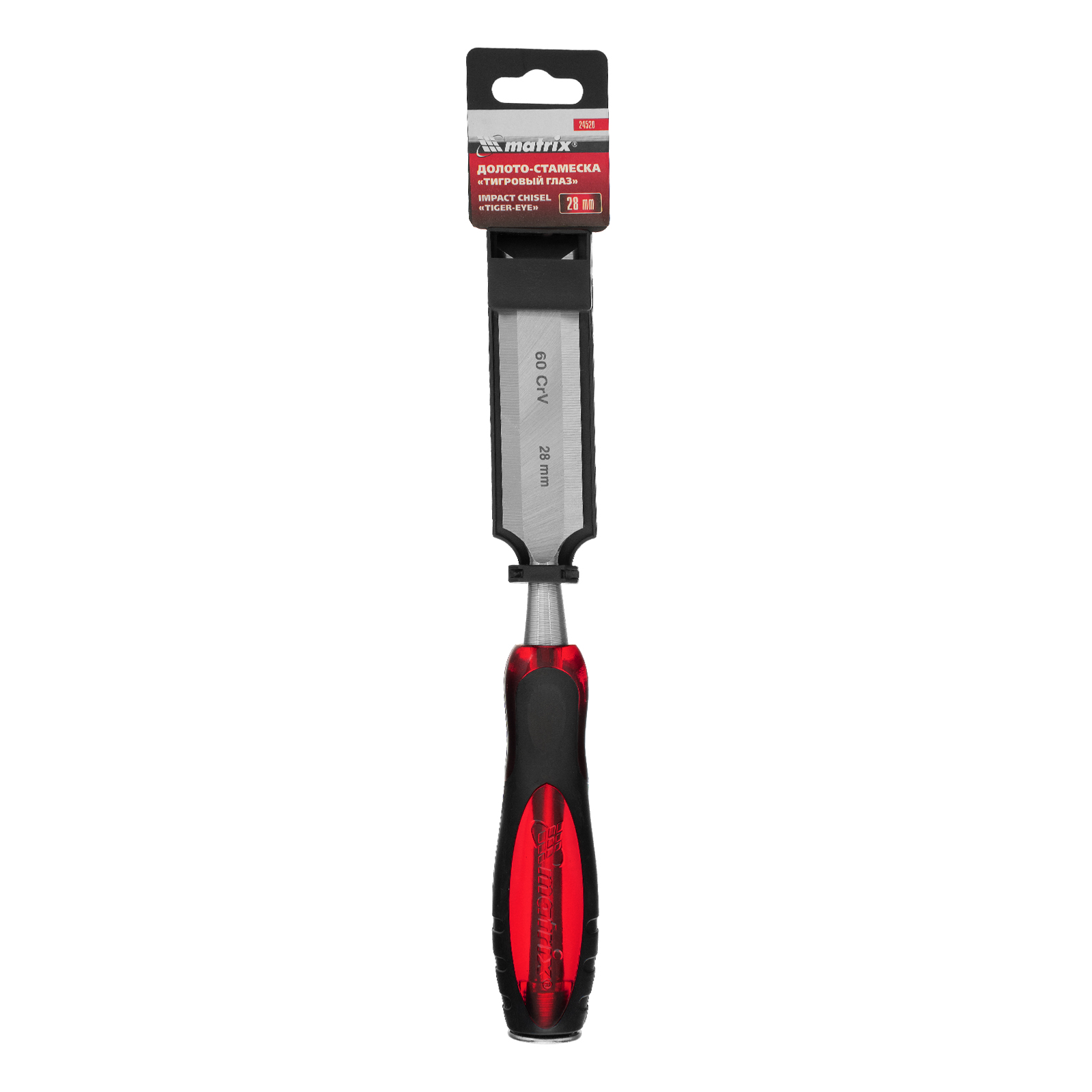 Долото-стамеска Matrix «Тигровый глаз» 24520 с полотном шириной 28 мм и двухкомпонентной обрезиненной рукояткой используется в столярном и плотницком деле, в производстве мебели. Позволяет вырезать углубления, формировать пазы, зачищать шипы и гнезда, снимать фаски. Инструмент выдерживает удары киянкой или молотком, т. к. металлический затыльник защищает его от деформации. Долото относится к профессиональному ручному инструменту, но может применяться и в домашних условиях.