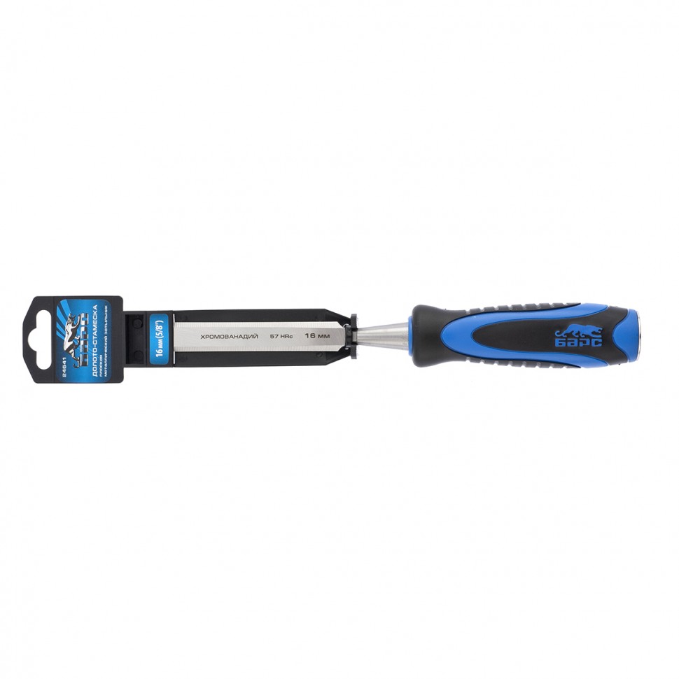 Плоское долото-стамеска Барс 24641 с шириной режущей части 16 мм, с двухкомпонентной рукояткой и металлическим затыльником, предназначено для выборки прямоугольных пазов, снятия фасок, обработки шиповых соединений и выполнения других столярно-плотницких работ. Используется для работы с массивом дерева любой твердости. По затыльнику рукоятки можно наносить удары киянкой или небольшим молотком, поэтому инструмент легко погружается в древесину и обеспечивает аккуратный ровный контур среза.