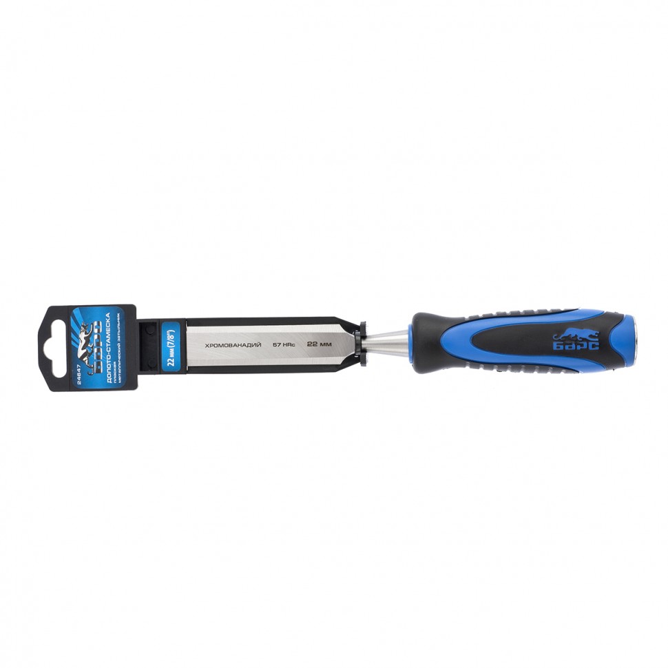 Плоское долото-стамеска Барс 24647 с шириной режущей части 22 мм, с двухкомпонентной рукояткой и металлическим затыльником, предназначено для выборки прямоугольных пазов, снятия фасок, обработки шиповых соединений и выполнения других столярно-плотницких работ. Используется для работы с массивом дерева любой твердости. По затыльнику рукоятки можно наносить удары киянкой или небольшим молотком, поэтому инструмент легко погружается в древесину и обеспечивает аккуратный ровный контур среза.