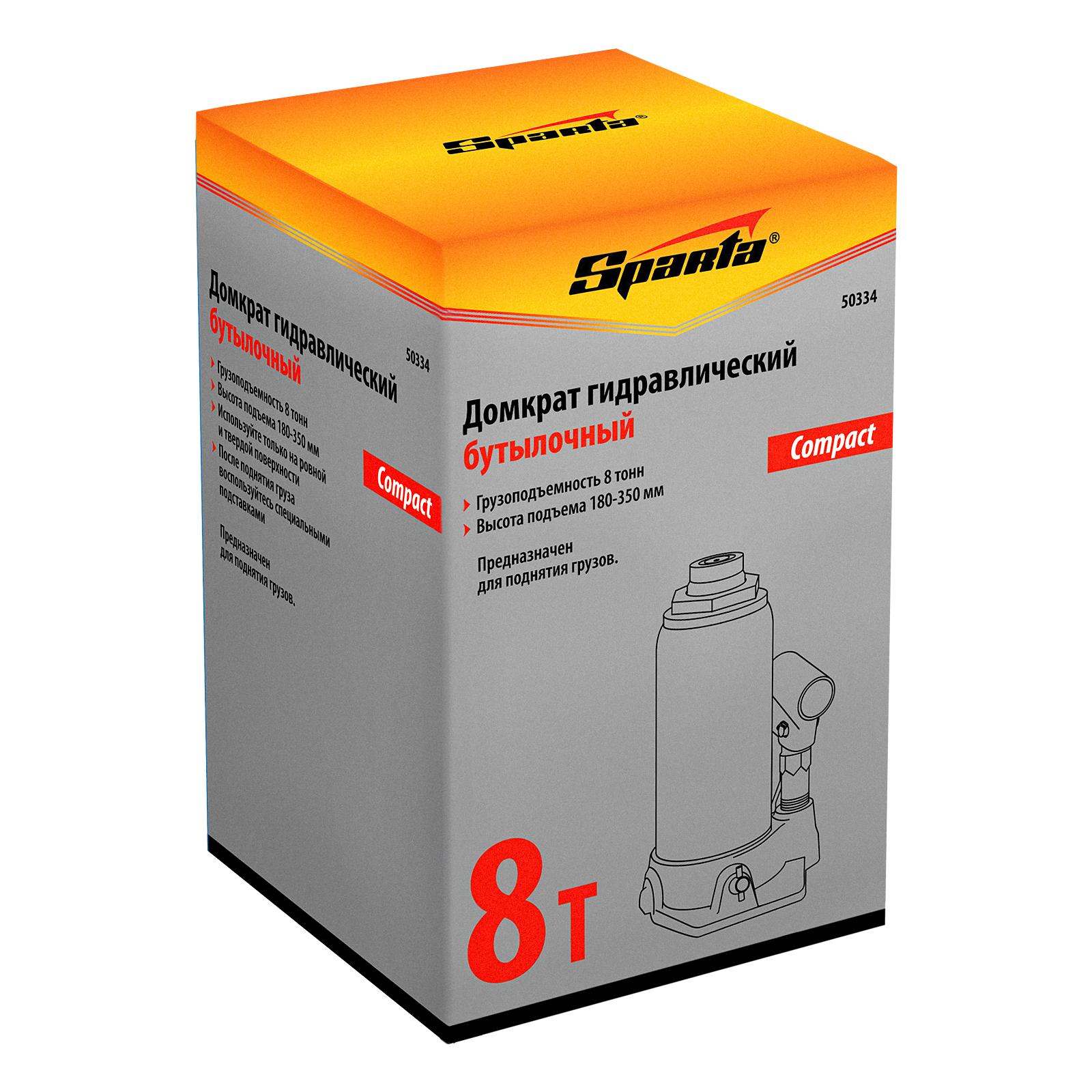 Домкрат гидравлический бутылочный 8 т, h подъема 180-350 мм Sparta Compact в Воронеже