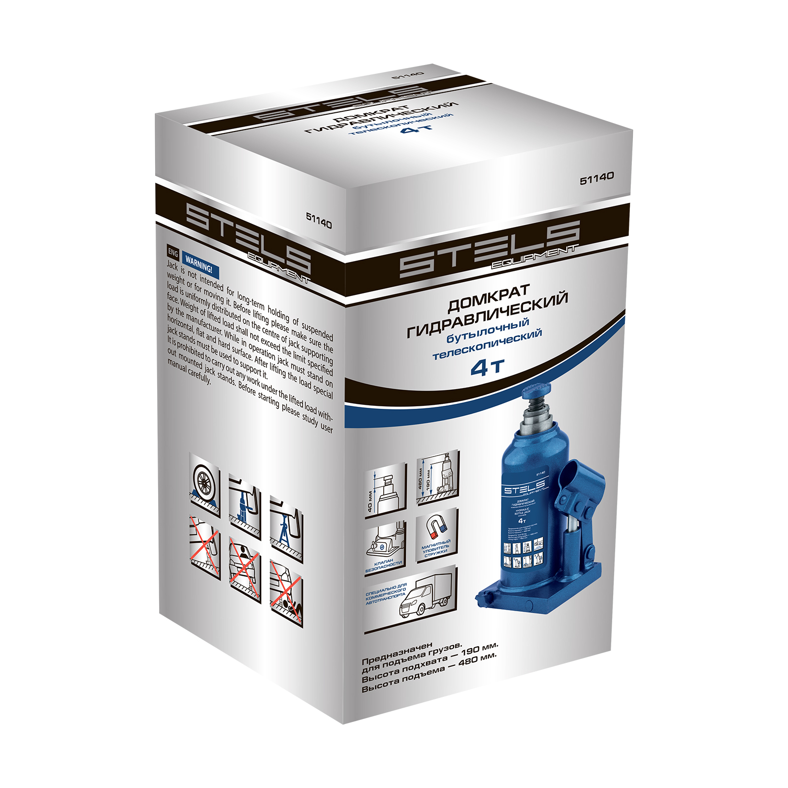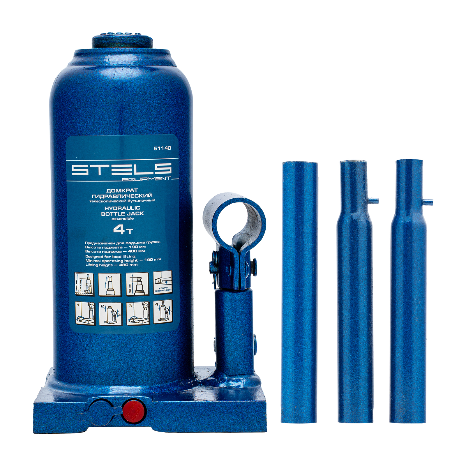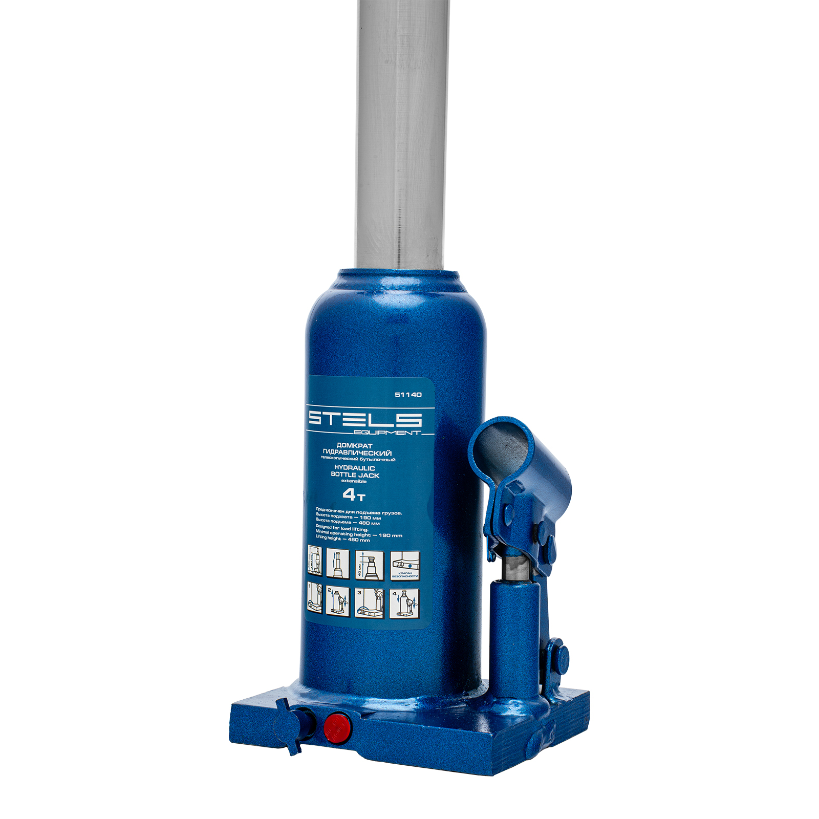 Гидравлический бутылочный телескопический домкрат Stels 51140 используется для поднятия грузов весом до 4 т с на высоту 190-480 мм. Не требует больших усилий и оптимален для автомобилей с большим клиренсом. Домкрат можно использовать в гараже для самостоятельного ремонта машины или в автосервисе для решения профессиональных задач.