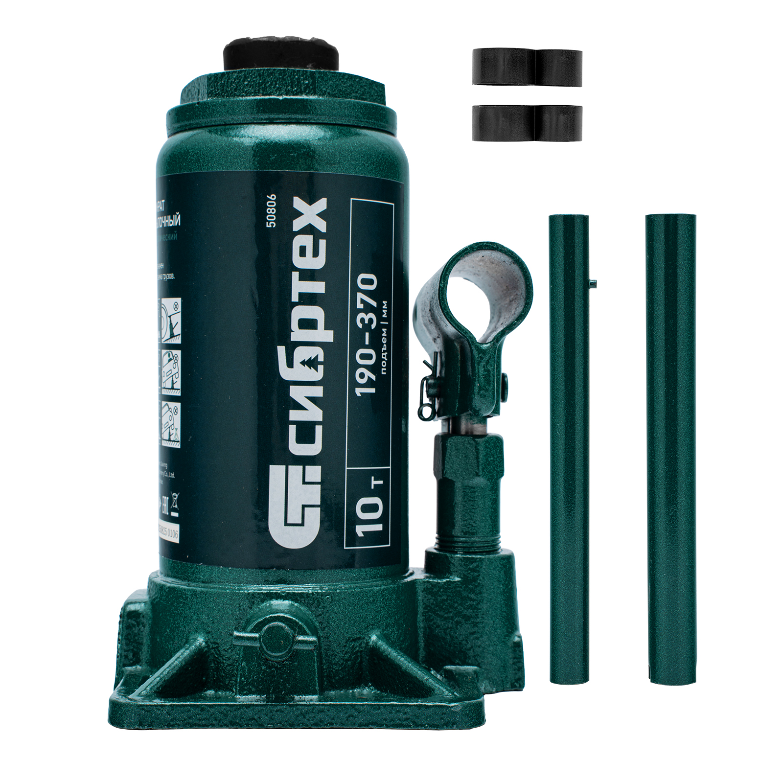 Домкрат гидравлический бутылочный Сибртех 50806 предназначен для подъема грузов массой до 10 т на высоту от 190 до 370 мм. Не требует больших усилий от пользователя и значительно облегчает рабочий процесс. Домкрат будет полезен при проведении техобслуживания машины в автосервисе или гараже.