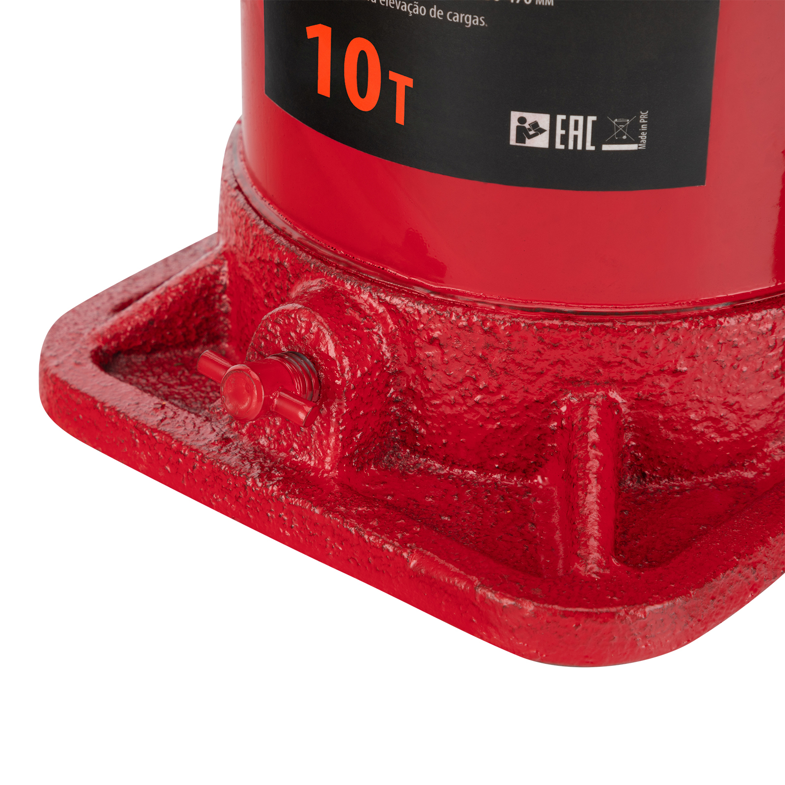 Гидравлический бутылочный домкрат Sparta 50325 рассчитан на подъем грузов весом до 10 т на высоту от 200 до 385 мм. Он пригодится как автолюбителям в гараже, так и профессиональным мастерам в автосервисах. Домкрат обеспечивает плавный подъем груза без особых усилий со стороны пользователя.
