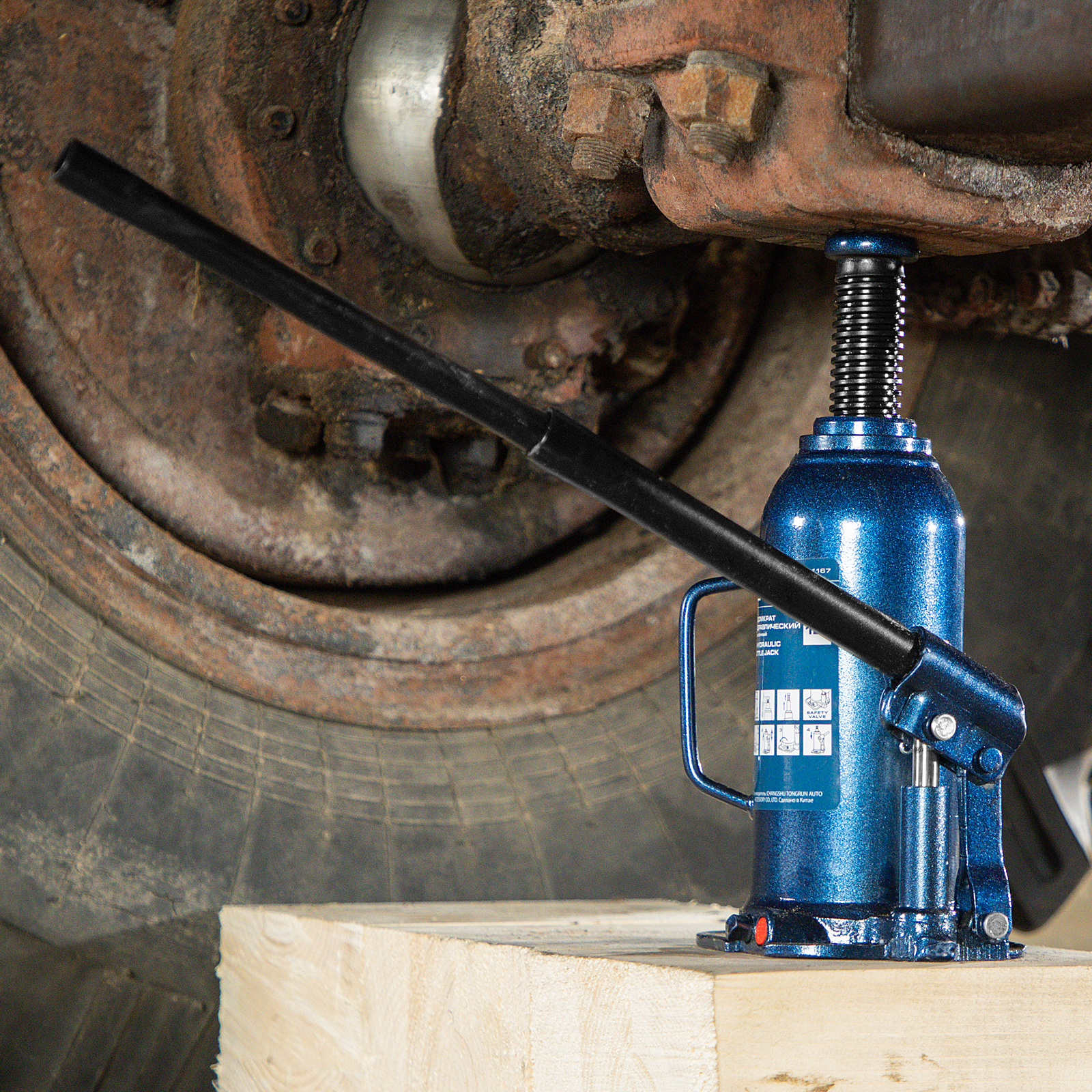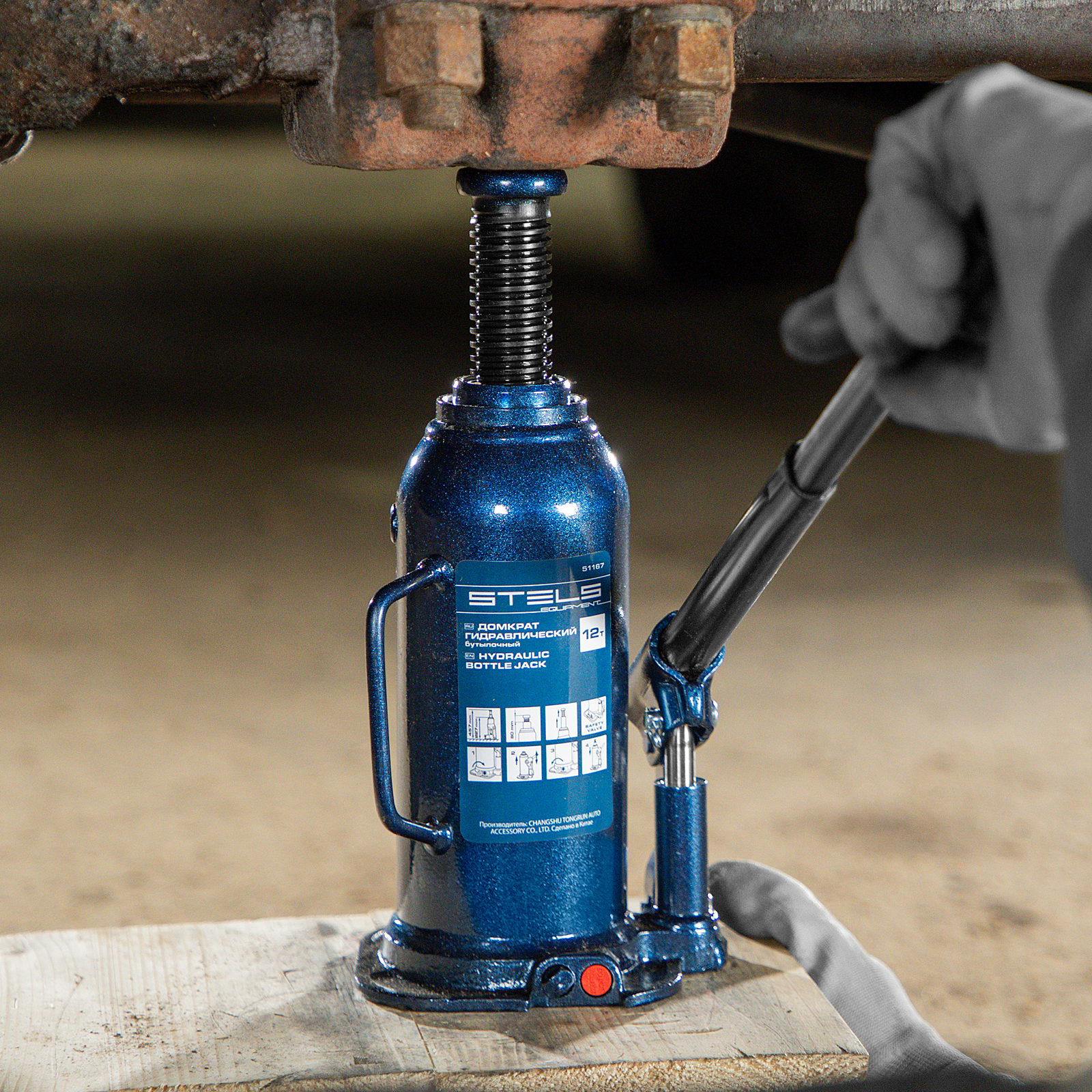 - Безопасная эксплуатация — благодаря предохранительному клапану домкрат не поднимает грузы тяжелее 12 т.