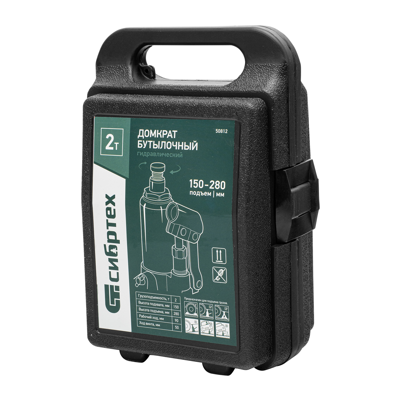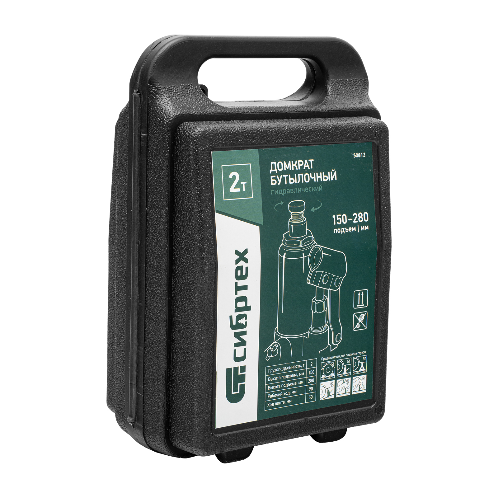Домкрат гидравлический бутылочный Сибртех 50812, поставляющийся в пластиковом кейсе, предназначен для подъема грузов массой до 2 т на высоту от 150 до 280 мм. Не требует больших усилий от пользователя и значительно облегчает рабочий процесс. Домкрат будет полезен при проведении техобслуживания машины в автосервисе или гараже.