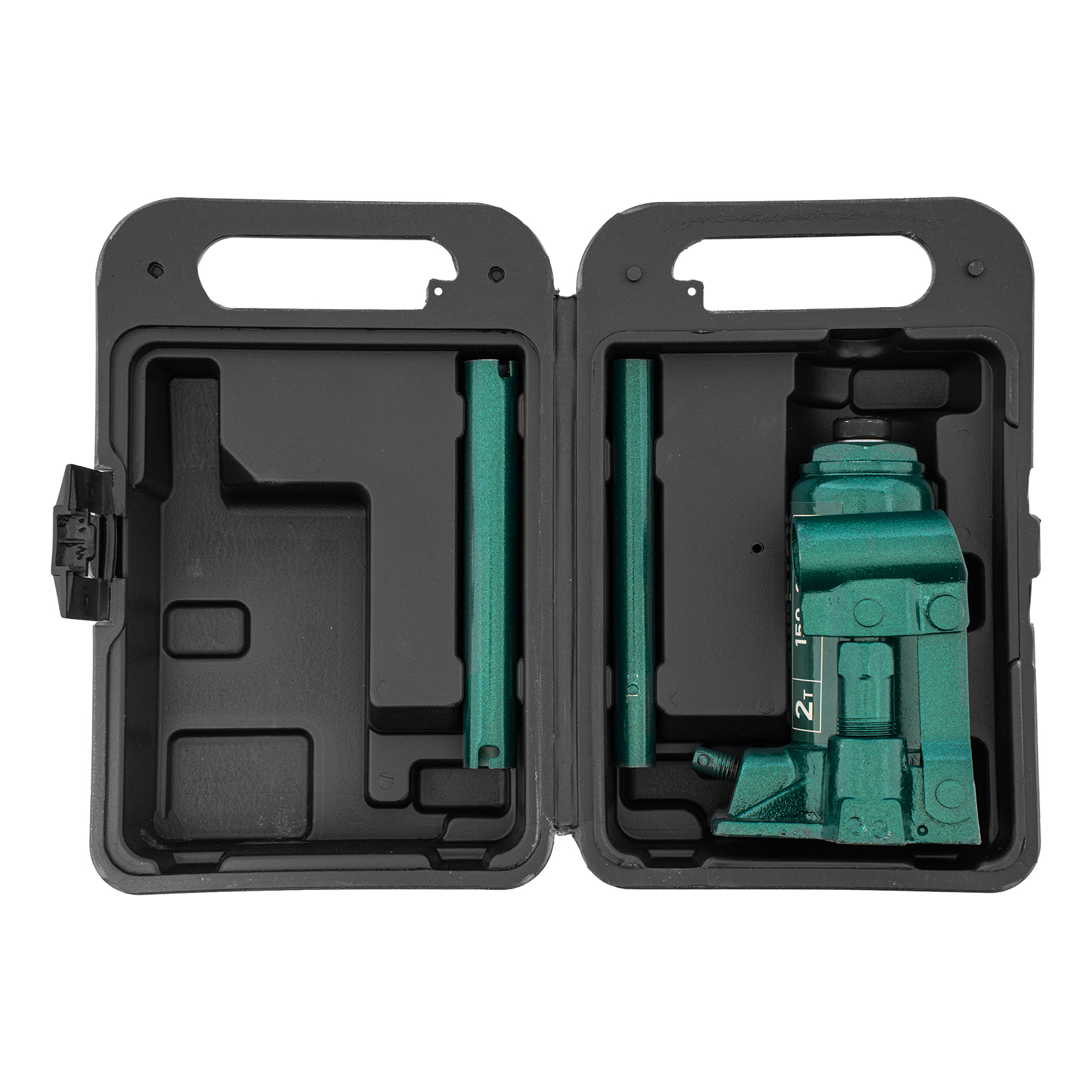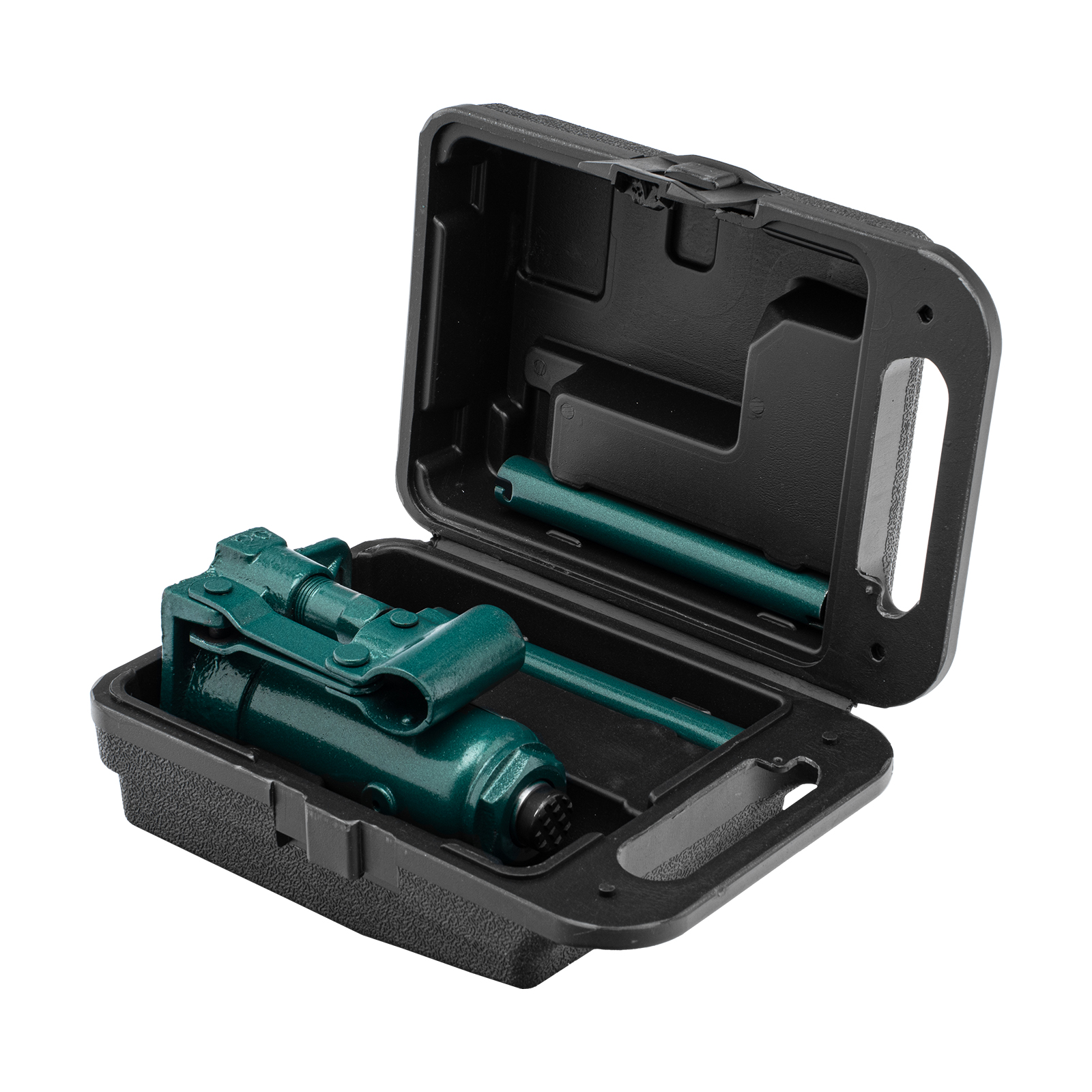- Удобное хранение и транспортировка — домкрат весит всего 1,9 кг и поставляется в прочном пластиковом кейсе с рукояткой.