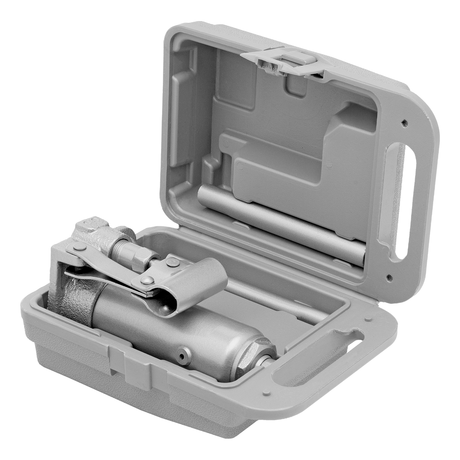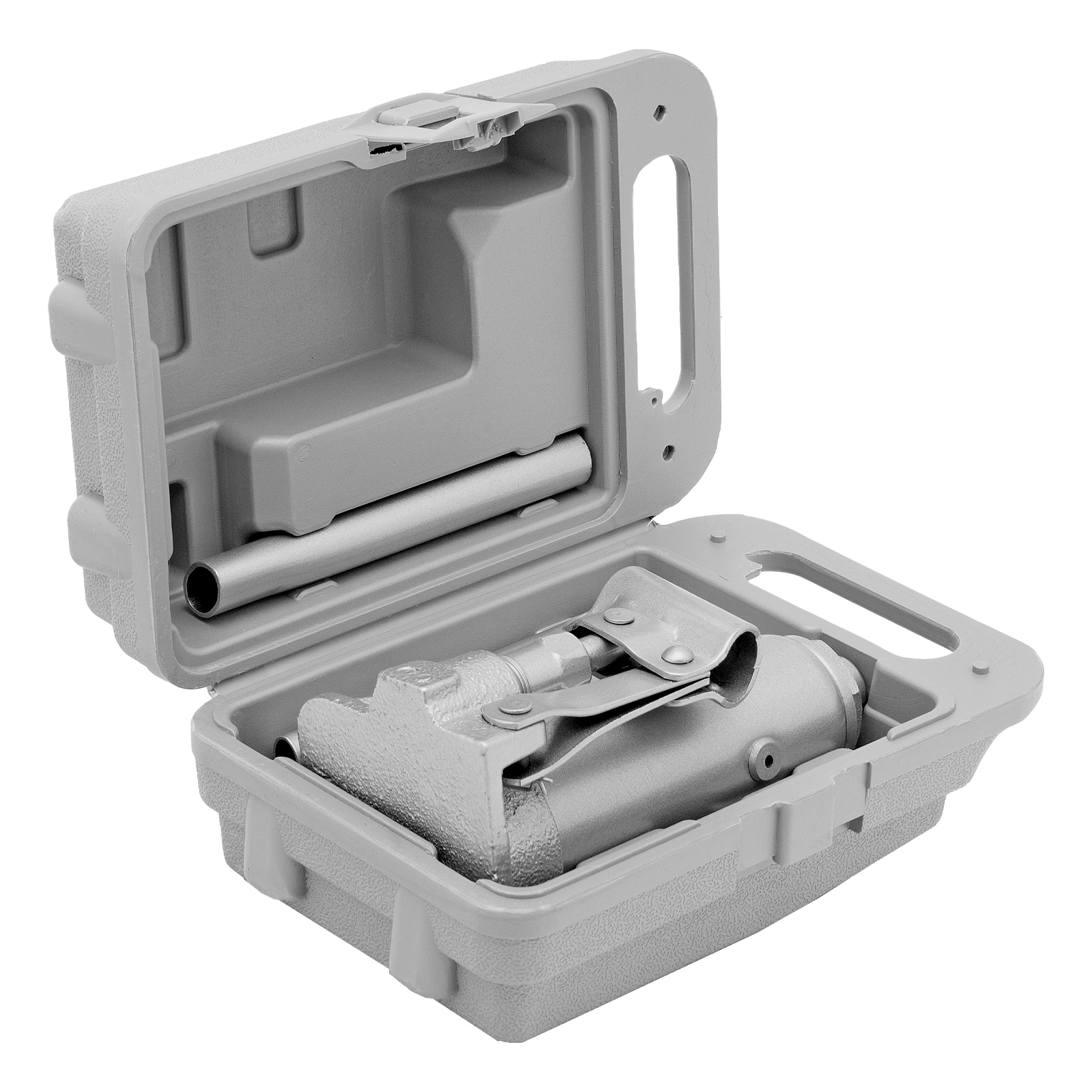 - Удобное хранение и транспортировка — домкрат поставляется в прочном пластиковом кейсе с ручкой.
