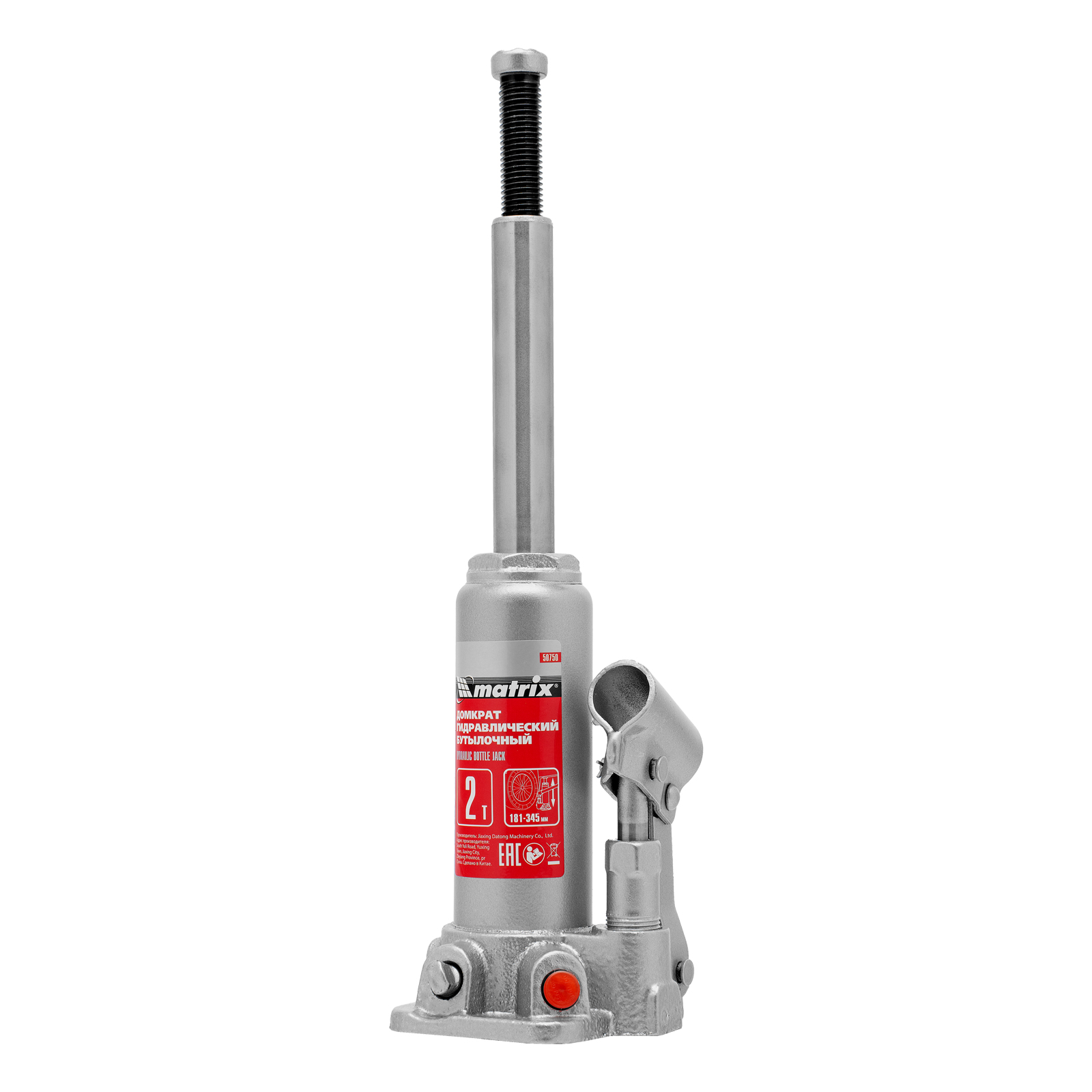 Домкрат гидравлический бутылочный Matrix 50750 предназначен для подъема грузов массой до 2 т на высоту от 181 до 345 мм. Оптимален для машин с большим клиренсом. Будет полезен автолюбителям при проведении технического обслуживания и ремонте авто в дороге или в гараже. Также домкрат подходит для полупрофессионального применения на станциях ТО.