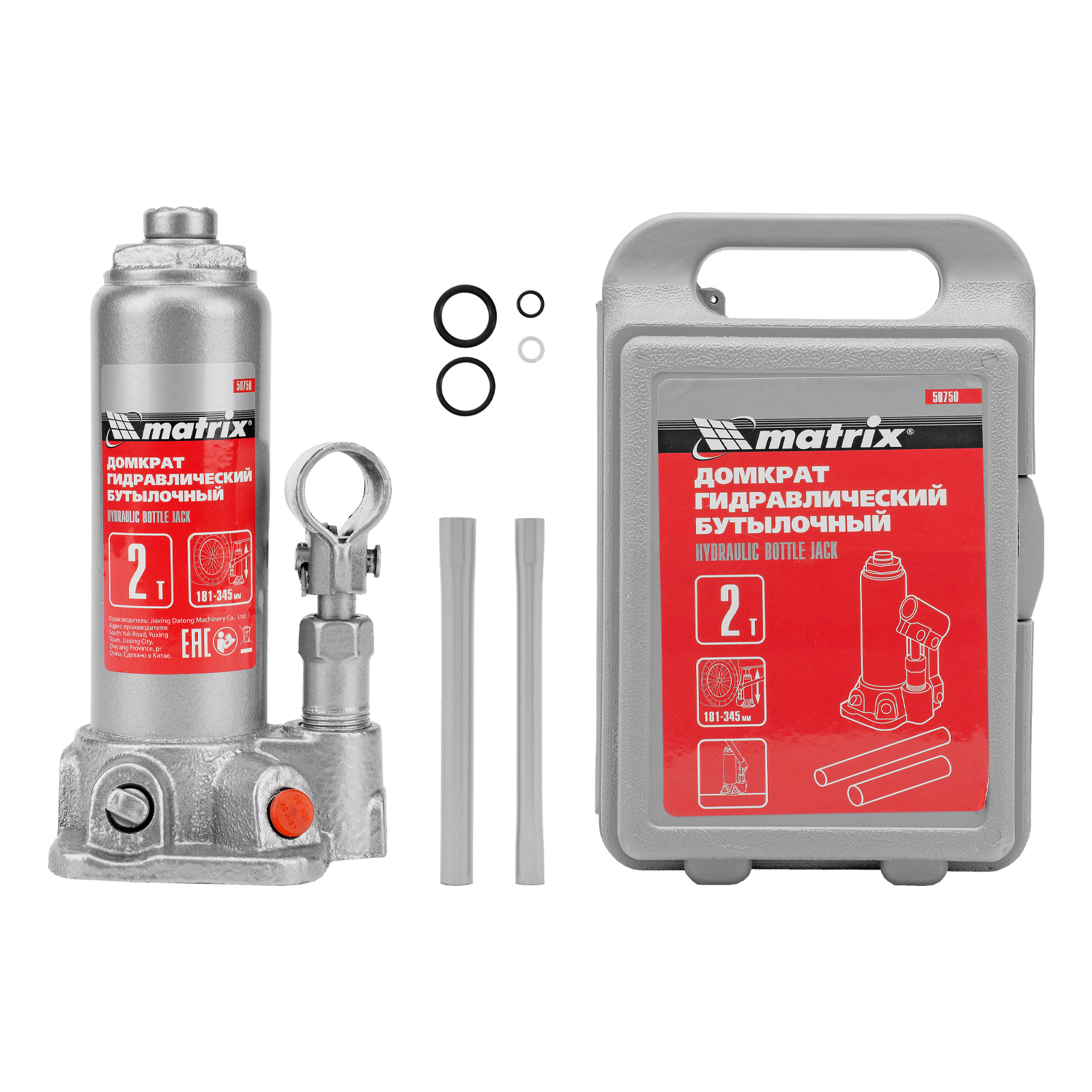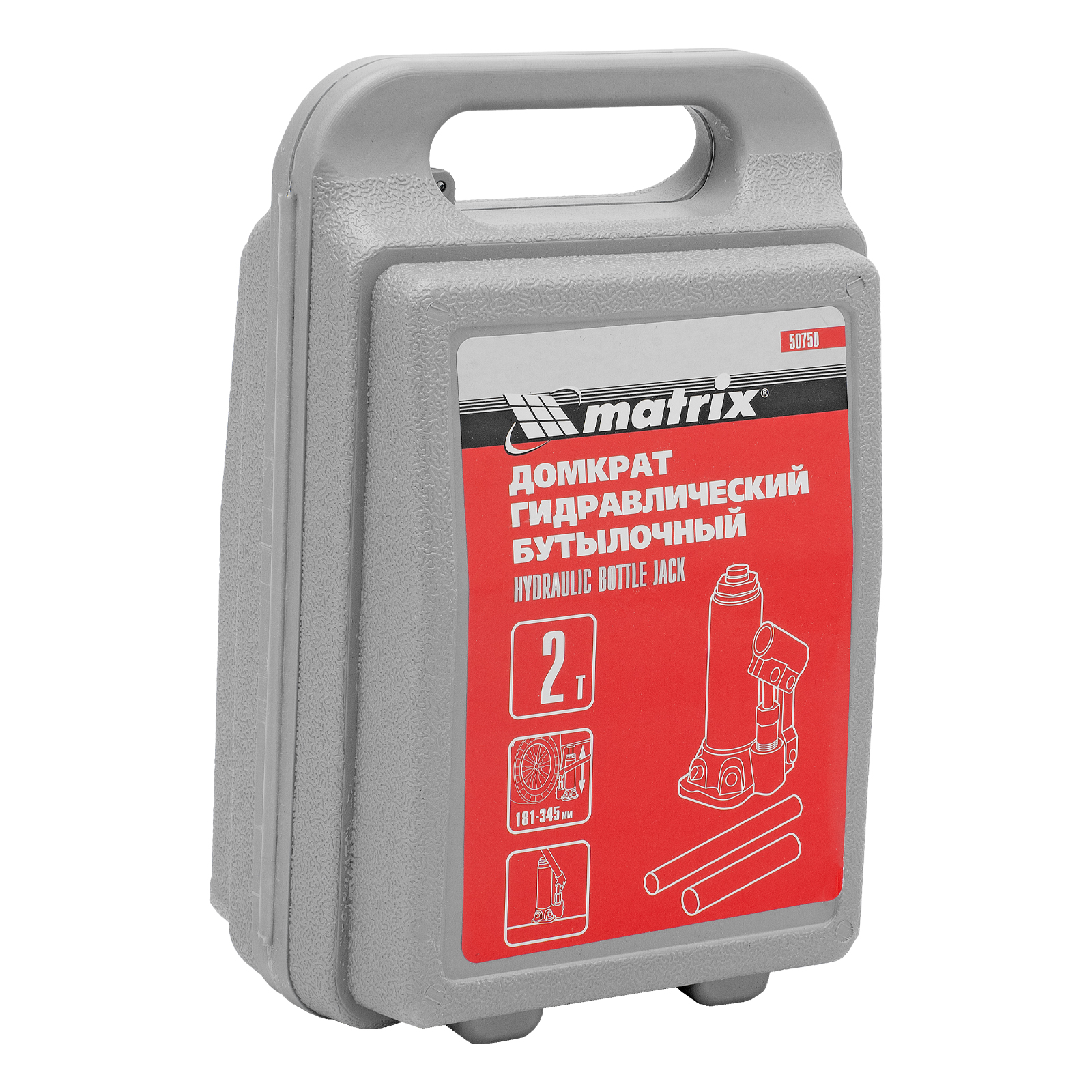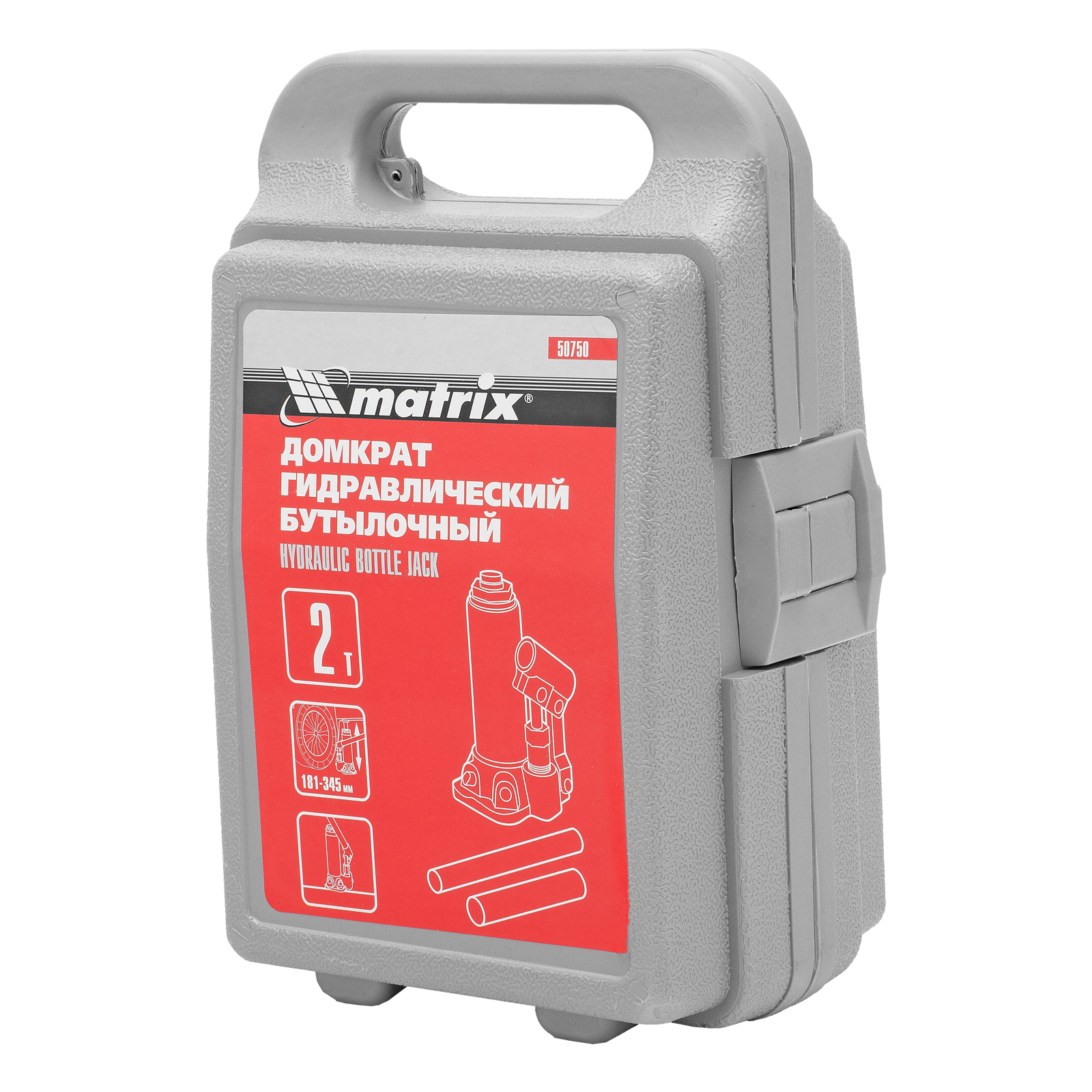 Домкрат гидравлический бутылочный, 2 т, высота подъема 181-345 мм, в пластиковый кейсе Matrix в Воронеже