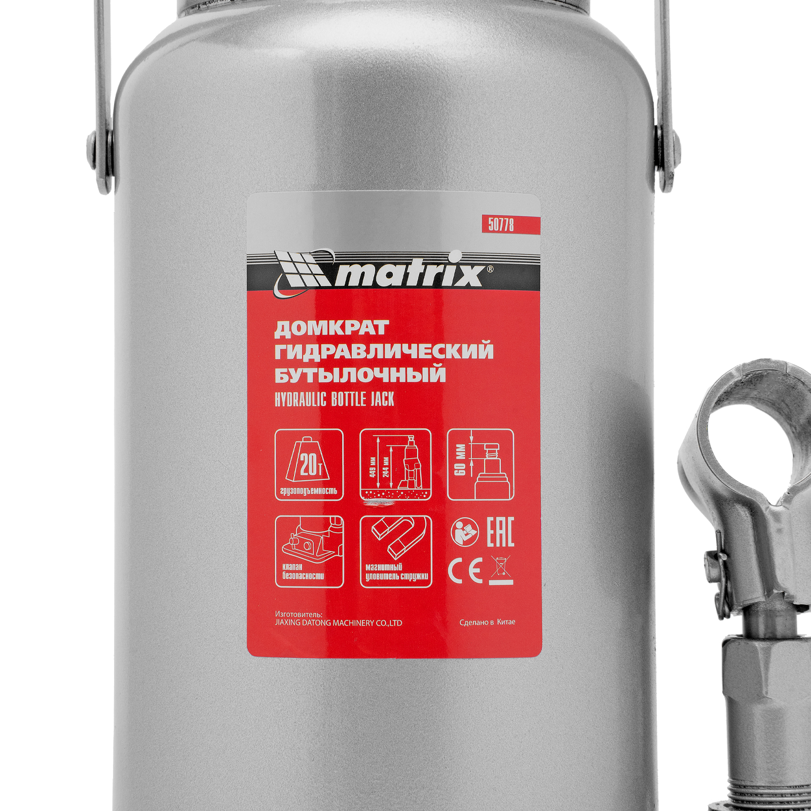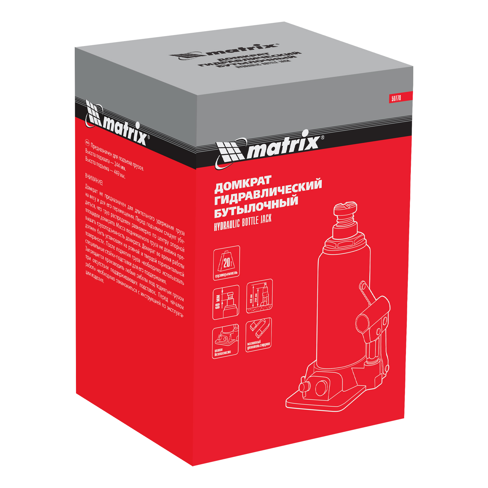 Домкрат гидравлический бутылочный, 20 т, h подъема 244-449 мм Matrix в Воронеже